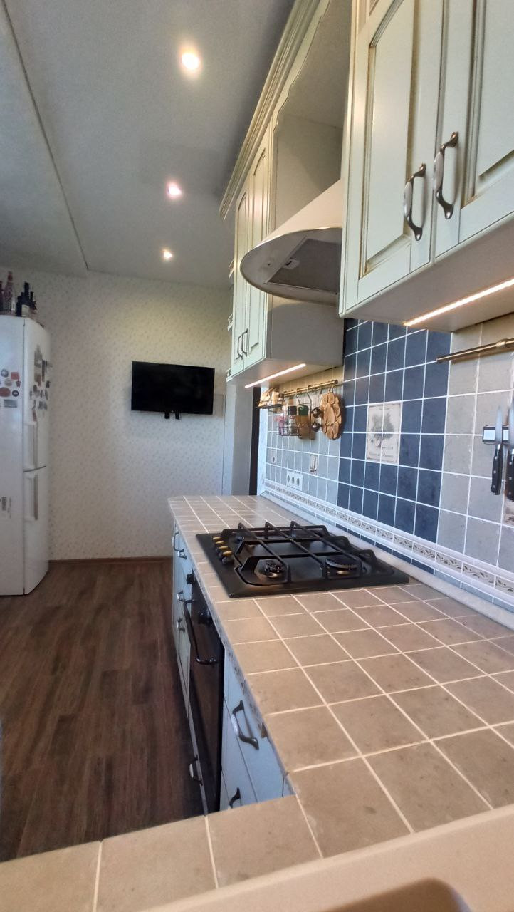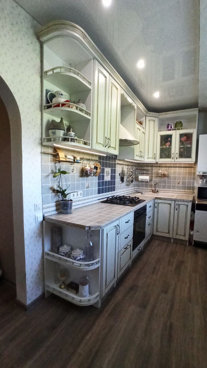Остается санфаянс, душевая кабина, кухонный гарнитур со встраиваемой техникой (по договоренности за доп.плату могу оставить бытовую технику и мебель)