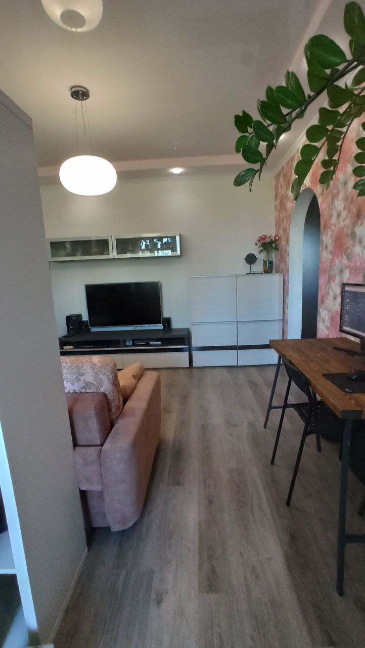 Квартира с хорошим ремонтом: окна ПВХ, натяжные потолки, застекленный балкон, СУ в плитке, душевая кабина, дорогой санфаянс.