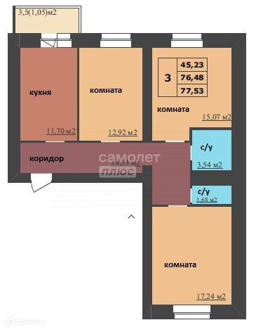 Общая площадь 77.53 м2