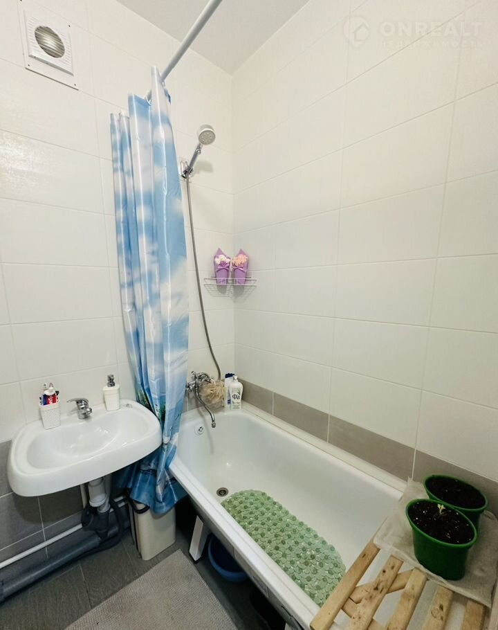 В квaртирe натяжные потолки. Вaнная в плитке.