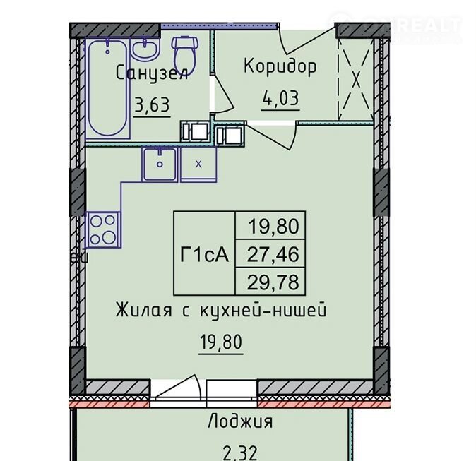 Общая площадь 29.8 м2