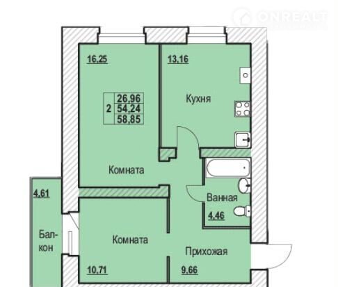 Общая площадь 58.9 м2