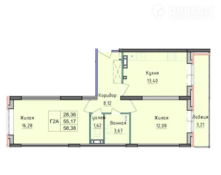 Общая площадь 58.4 м2