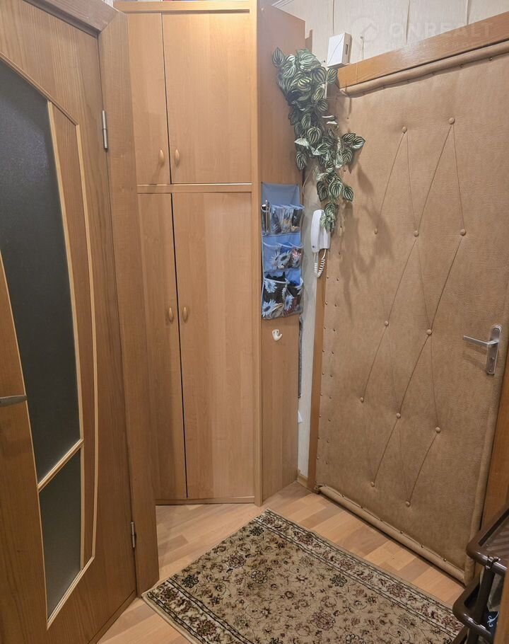 В квартире частично остается мебель: кухонный гарнитур, корпусная мебель в гостиной, шкаф в коридоре.