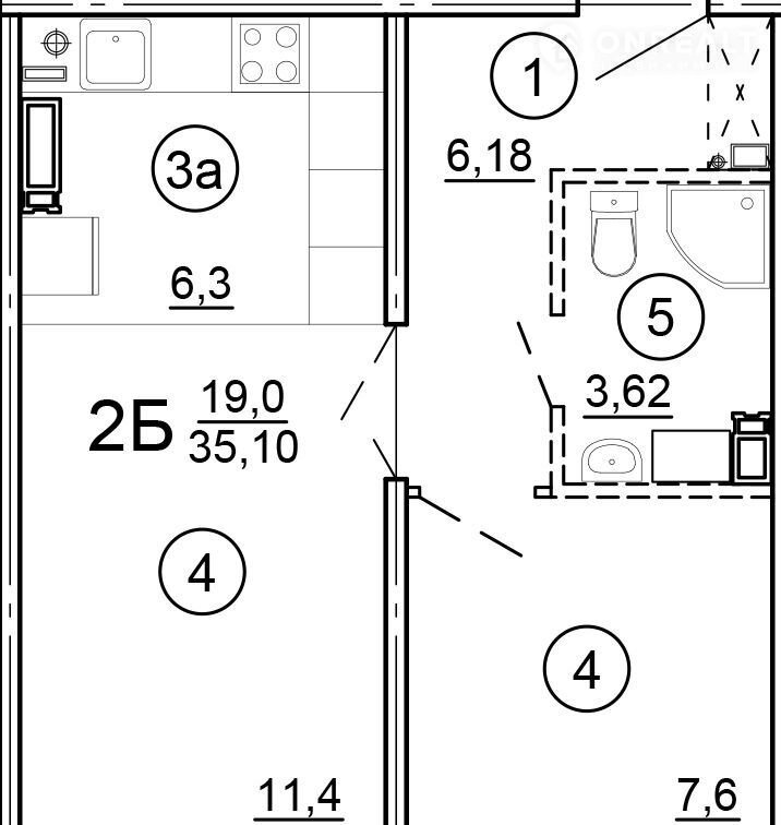 Общая площадь 35.1 м2
