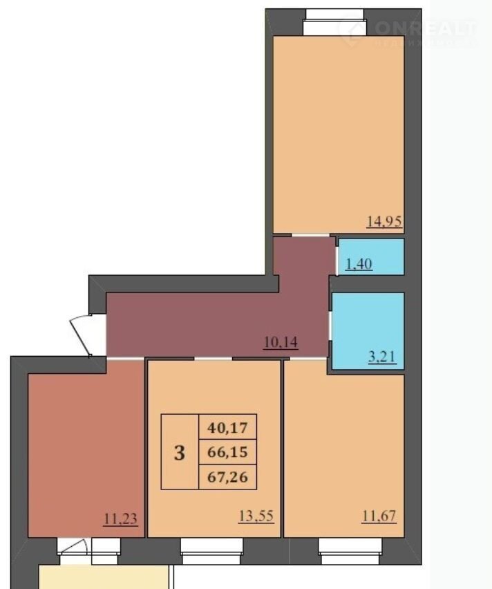 Общая площадь 67.3 м2
