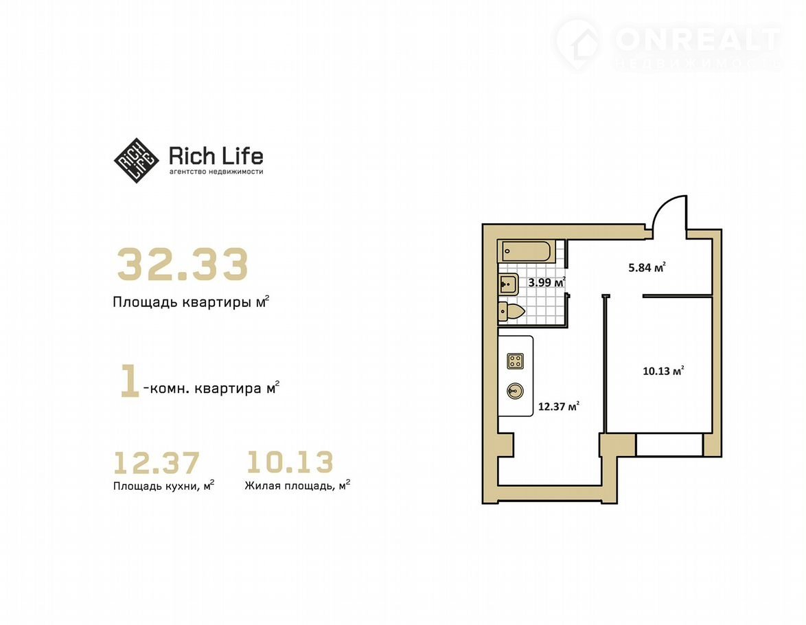 Общая площадь 32.3 м2
