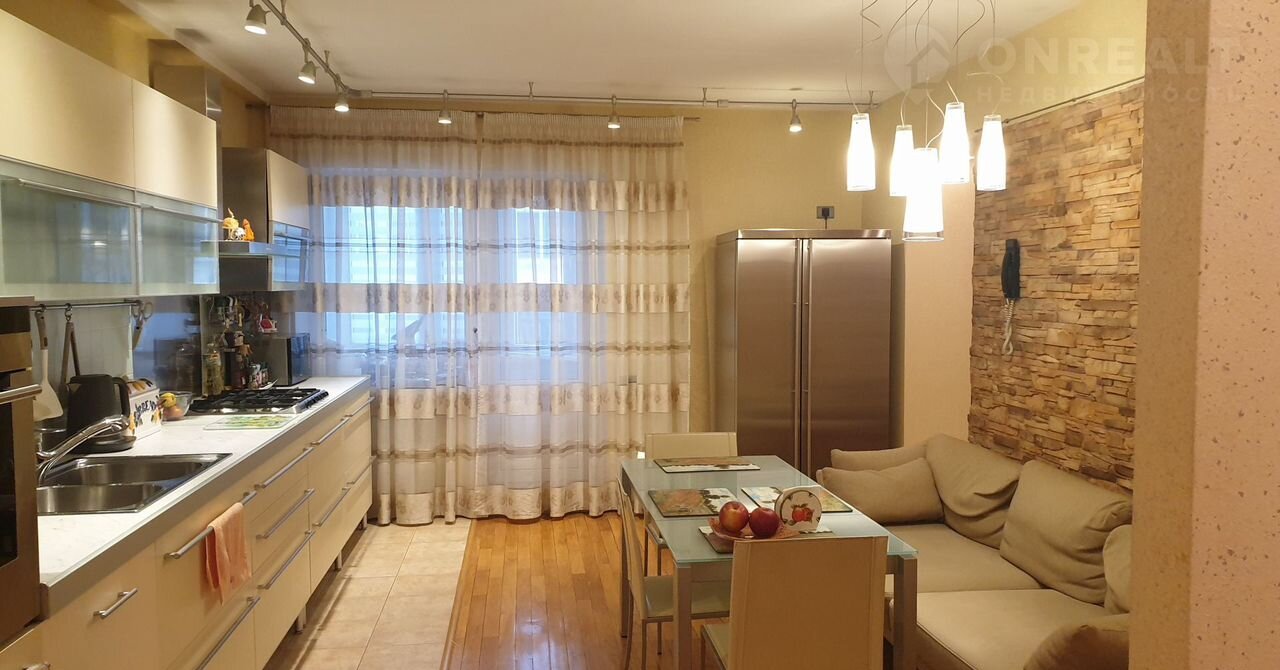 В квартире выполнен качественный ремонт с использованием импортных материалов, разные сценарии света, встроенная мебель, в т.ч. немецкая кухня с техникой: варочная панель, духовой шкаф, посудомоечная машина, вытяжка. В гостиной установлен встроенный электрический камин. В санузлах качественная сантехника и аксессуары, электрическая сауна.