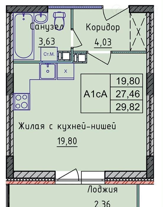 Общая площадь 29.8 м2