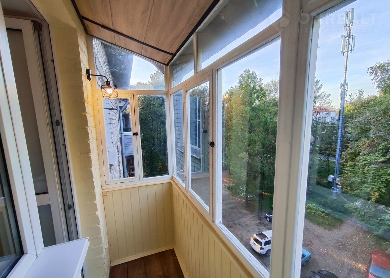 Балкон застеклен, на балконе установлено освещение.