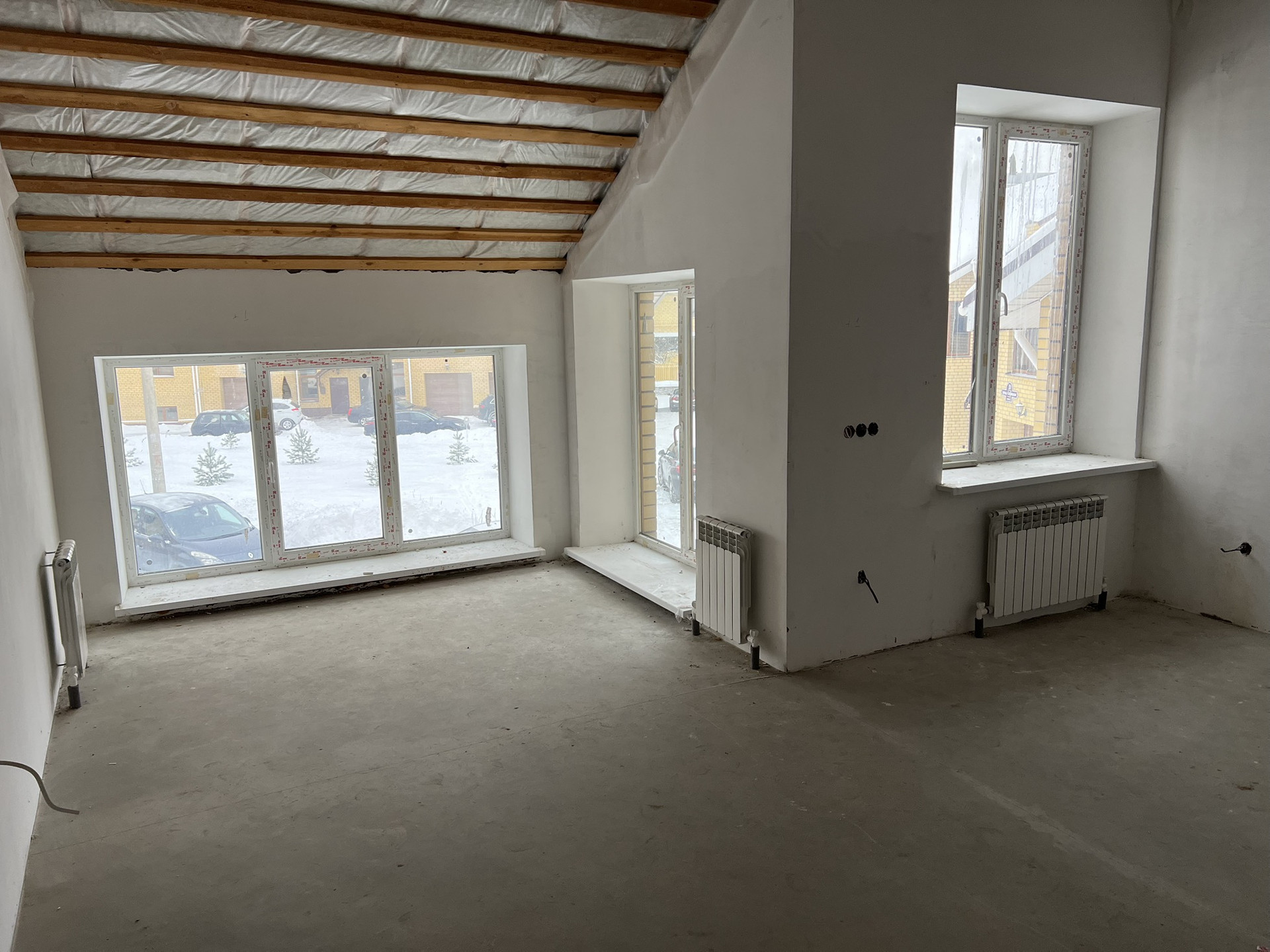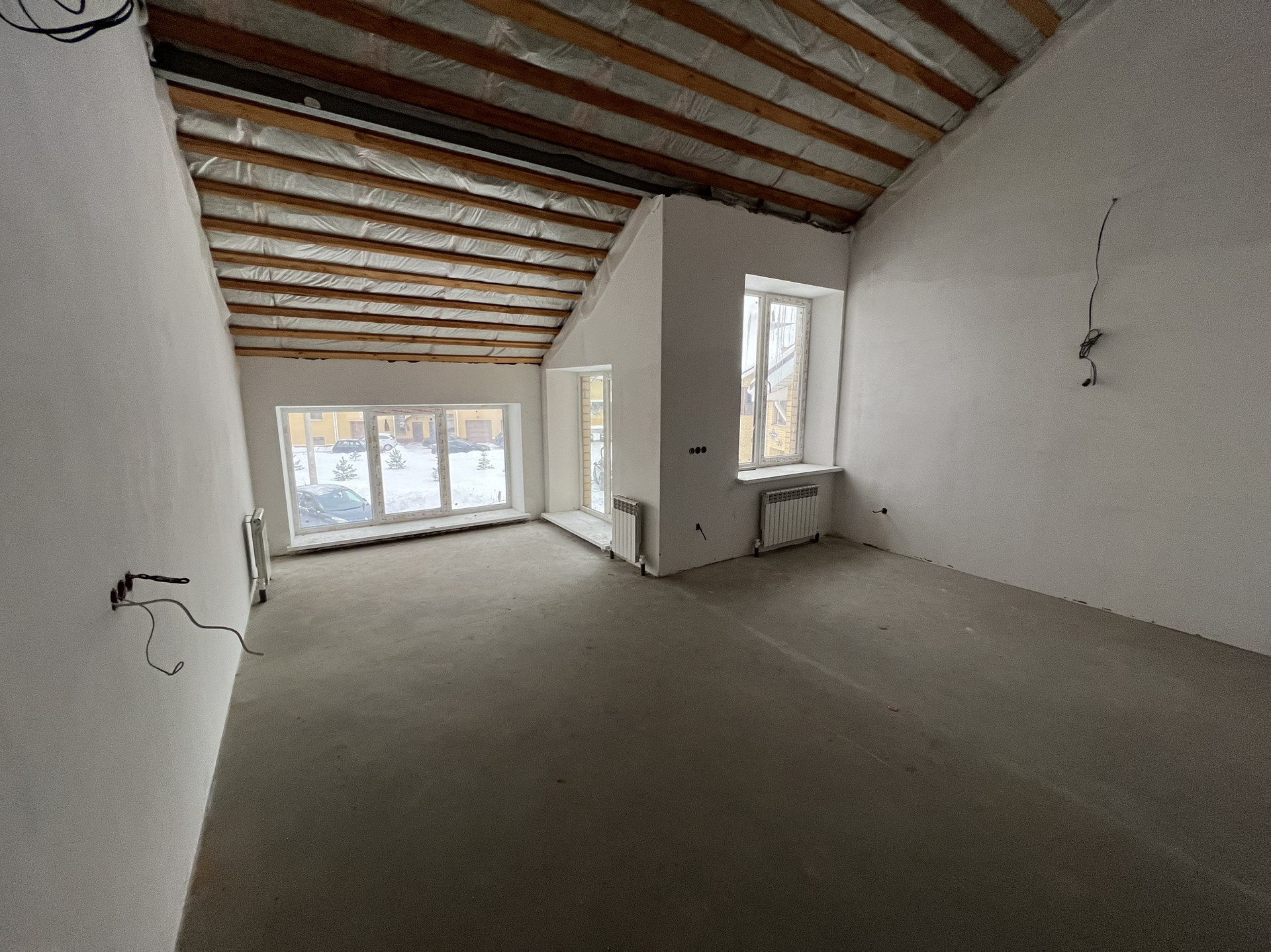 3 Второй этаж санузел, свободная планировка, потолки 2,2-5,5м (можно сделать еще один уровень с мансардными окнами +40м2(353квм)),электропроводка(свет, розетки)