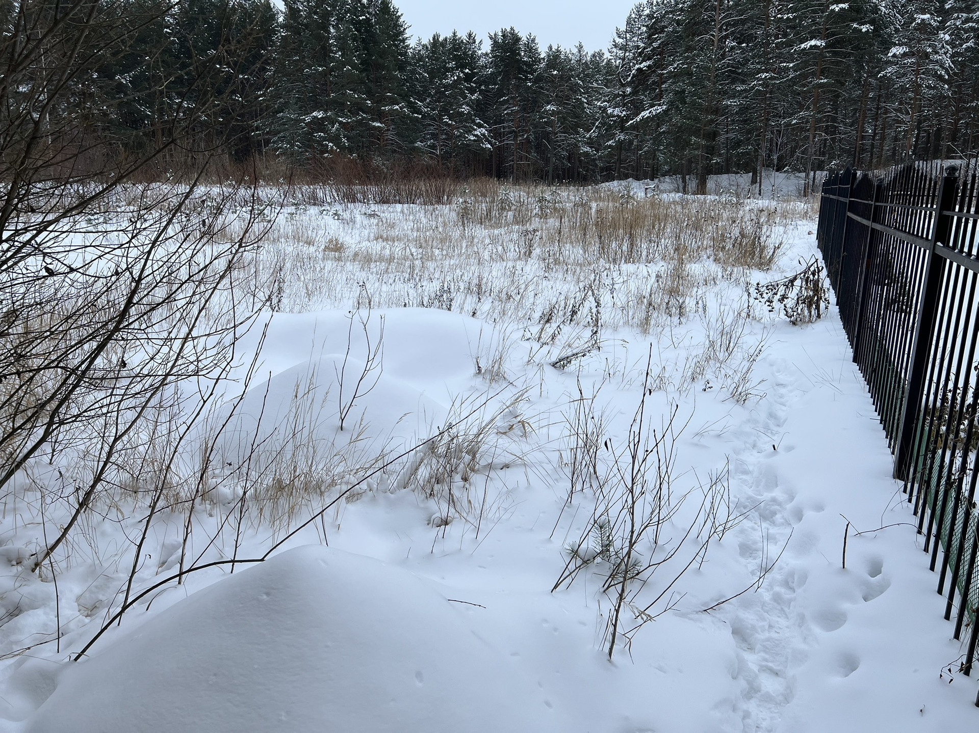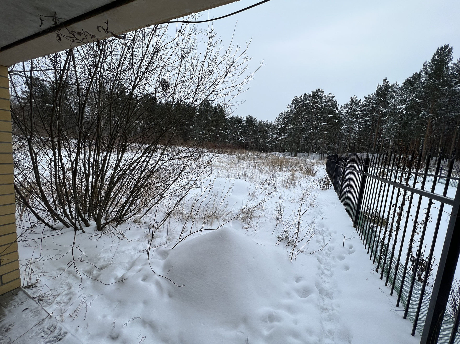 Участок 3.5 сотки выход с цокольного этажа, с одной стороны огорожен забором.