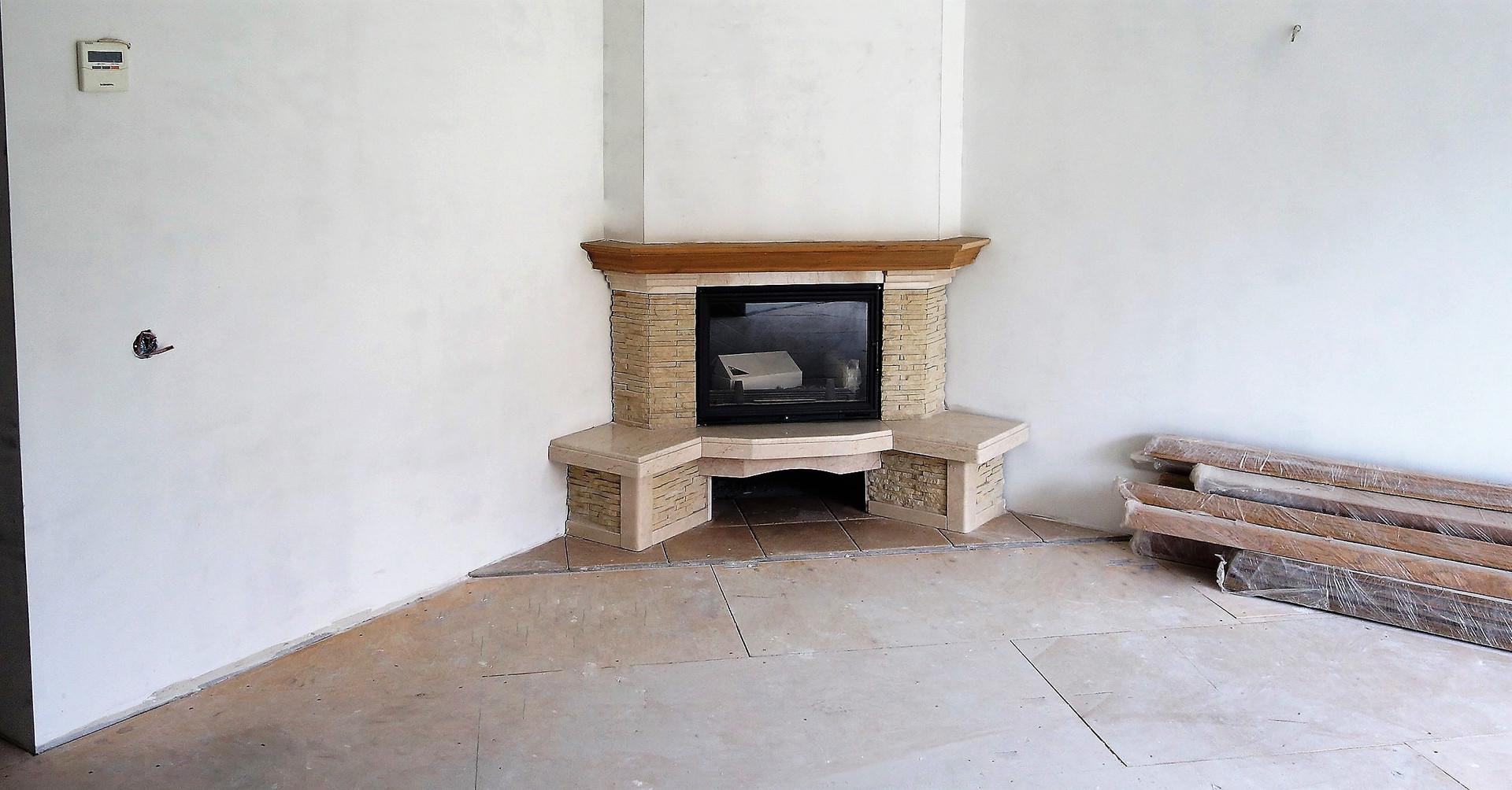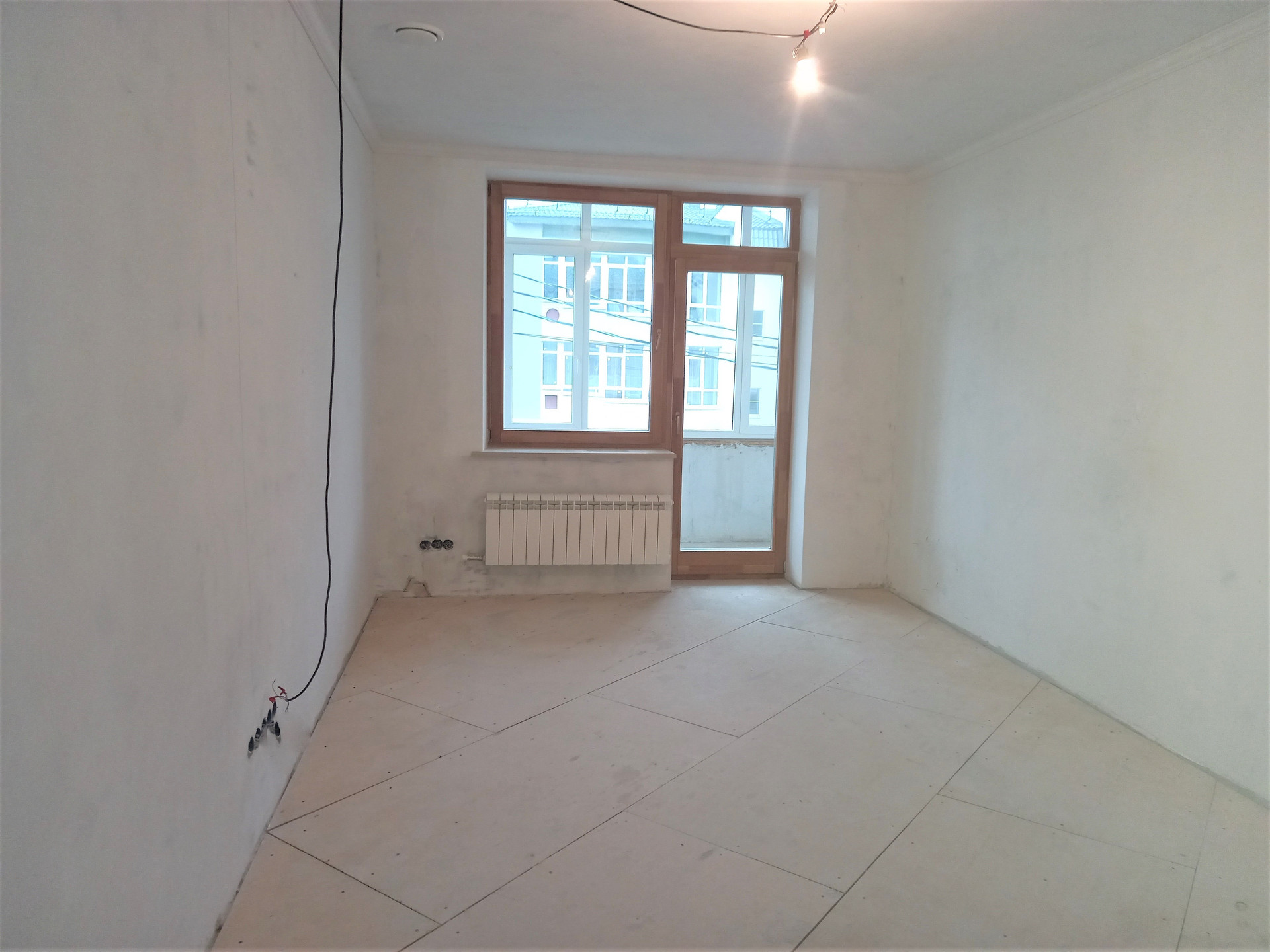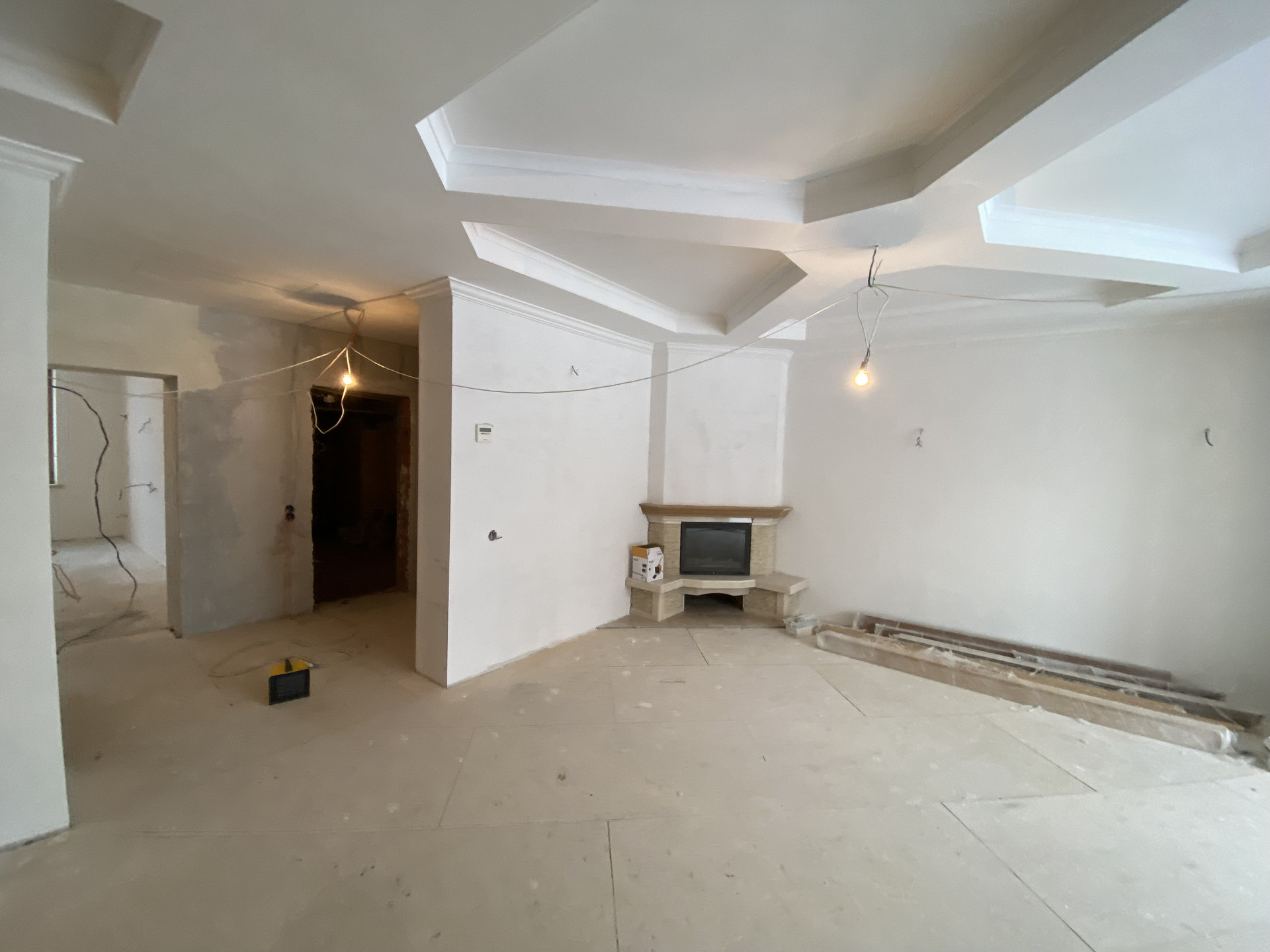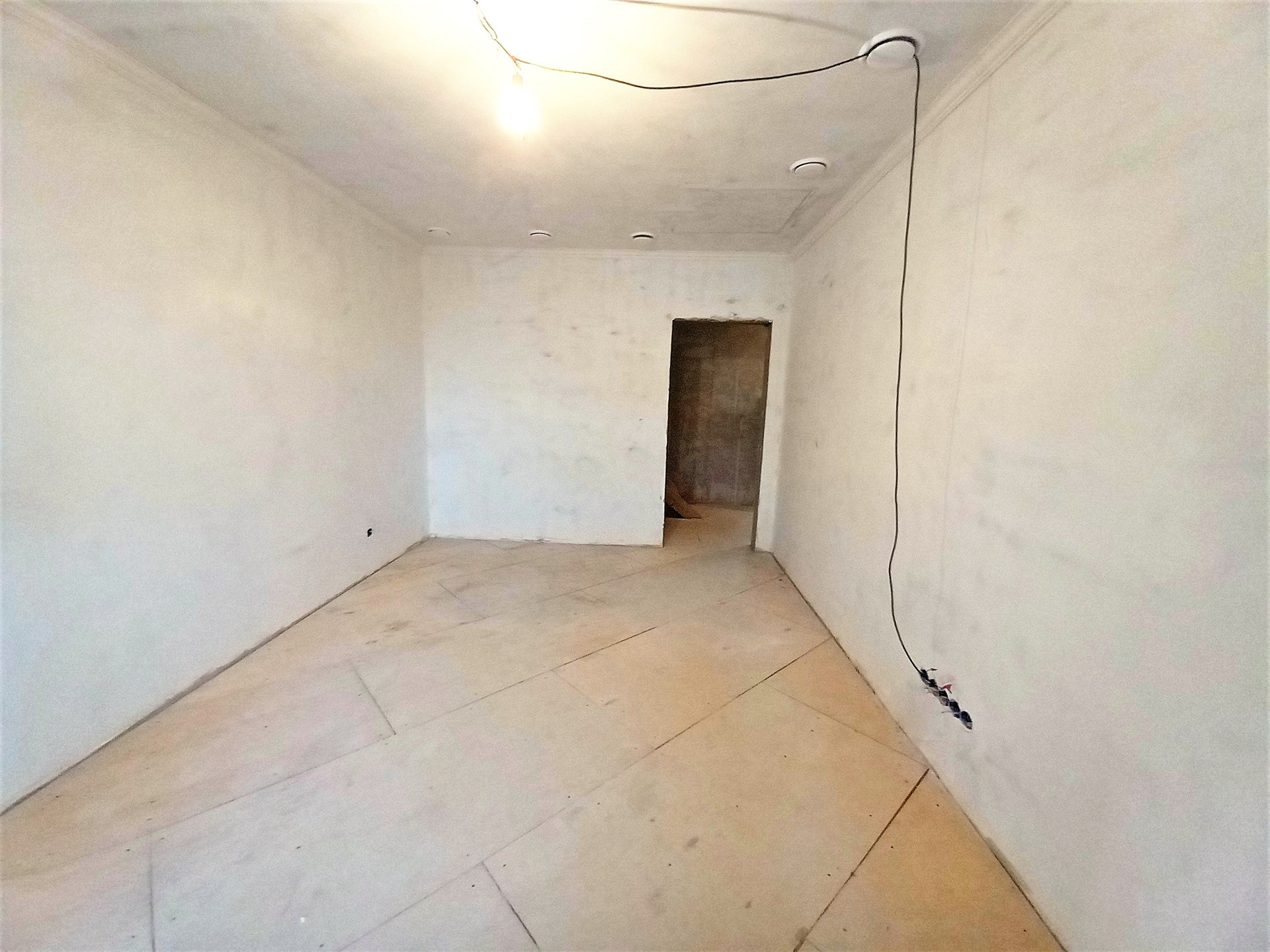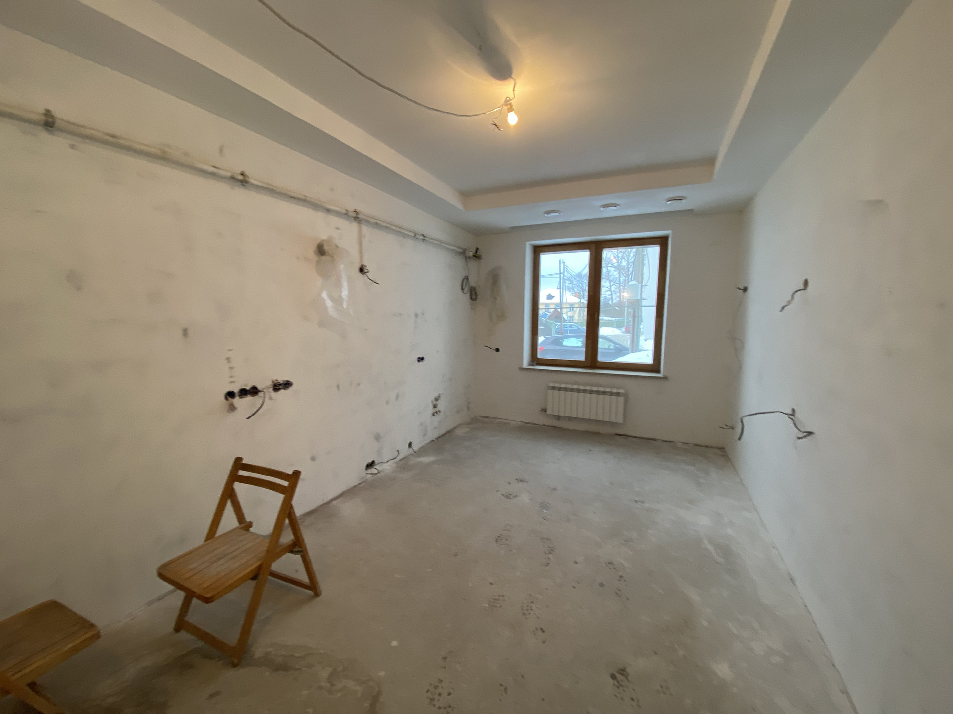 Выравнены стены под финишную отделку, полы подготовлены к укладке покрытия.