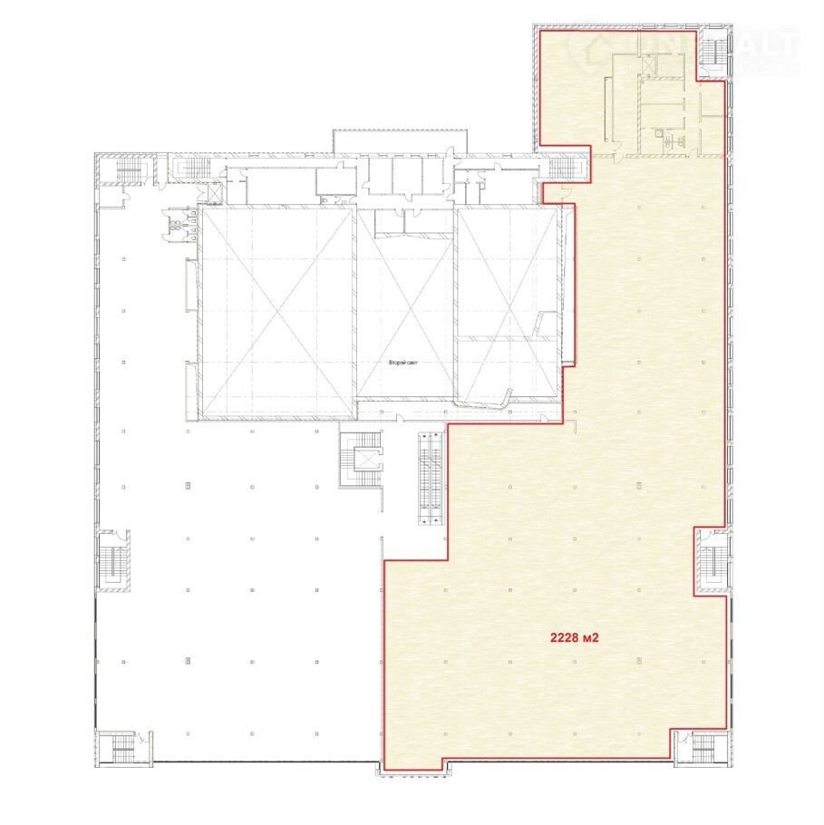Площадь продаваемого помещения - 2228 кв.м. представляет из себя часть