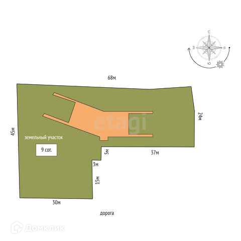 Площадь участка 9 сот.