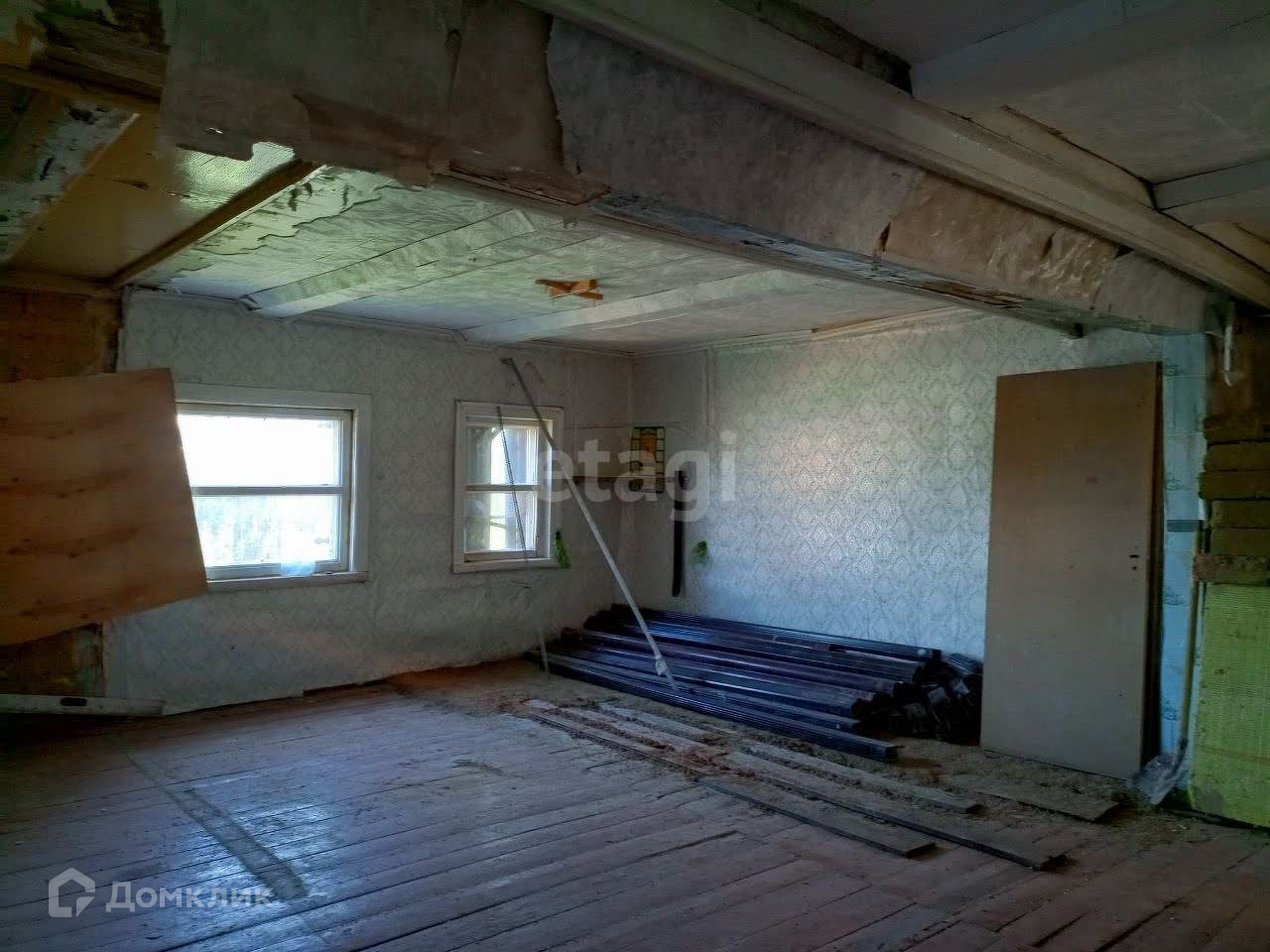 В настоящее время в доме требуется ремонт. Возможно использование под склады или мастерскую. Для постоянного проживания не подходит.