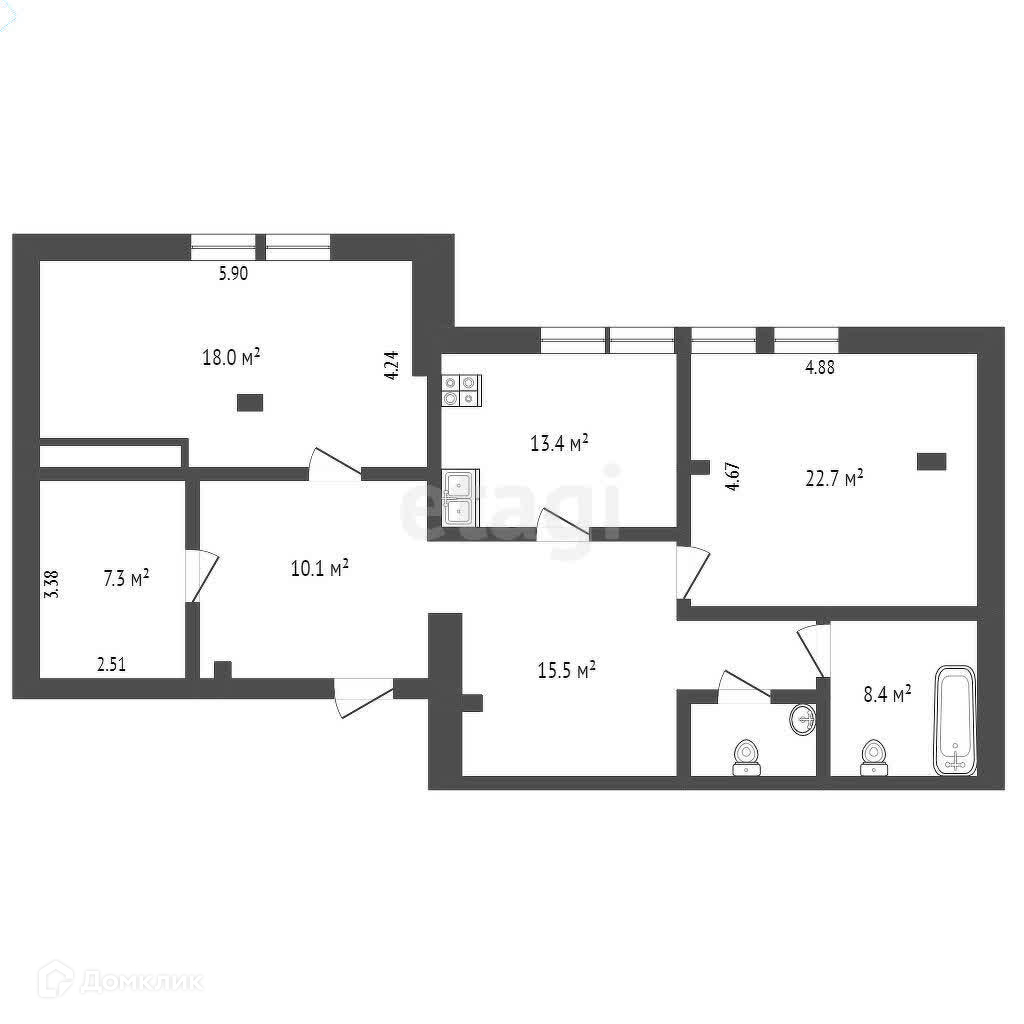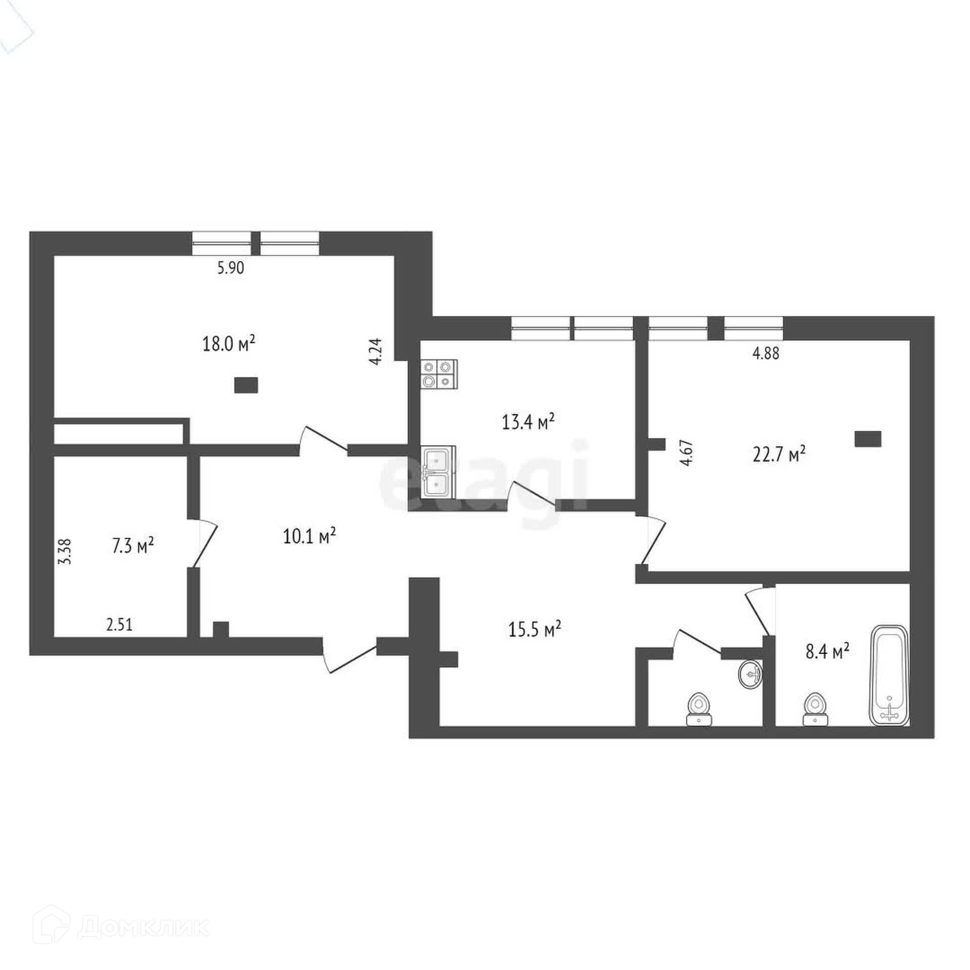 Общая площадь 120.5 м2