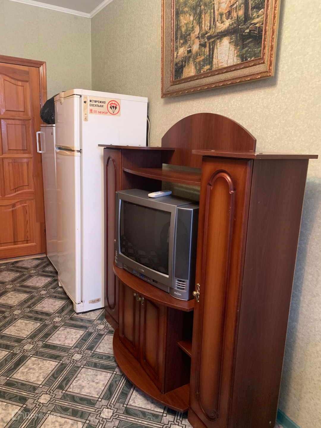 В квартире сделан светлый, косметический ремонт. Есть все необходимое для комфортного проживания: стиральная машина, холодильник. В комнате есть большой диван, шкаф, холодильник и письменный стол.