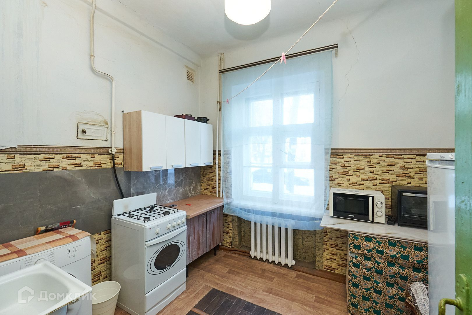 Свежий косметический ремонт, на полу ламинат, окна ПВХ, мебель (новый диван и платяной шкаф), холодильник, стиралка и СВЧ-печь на кухне.