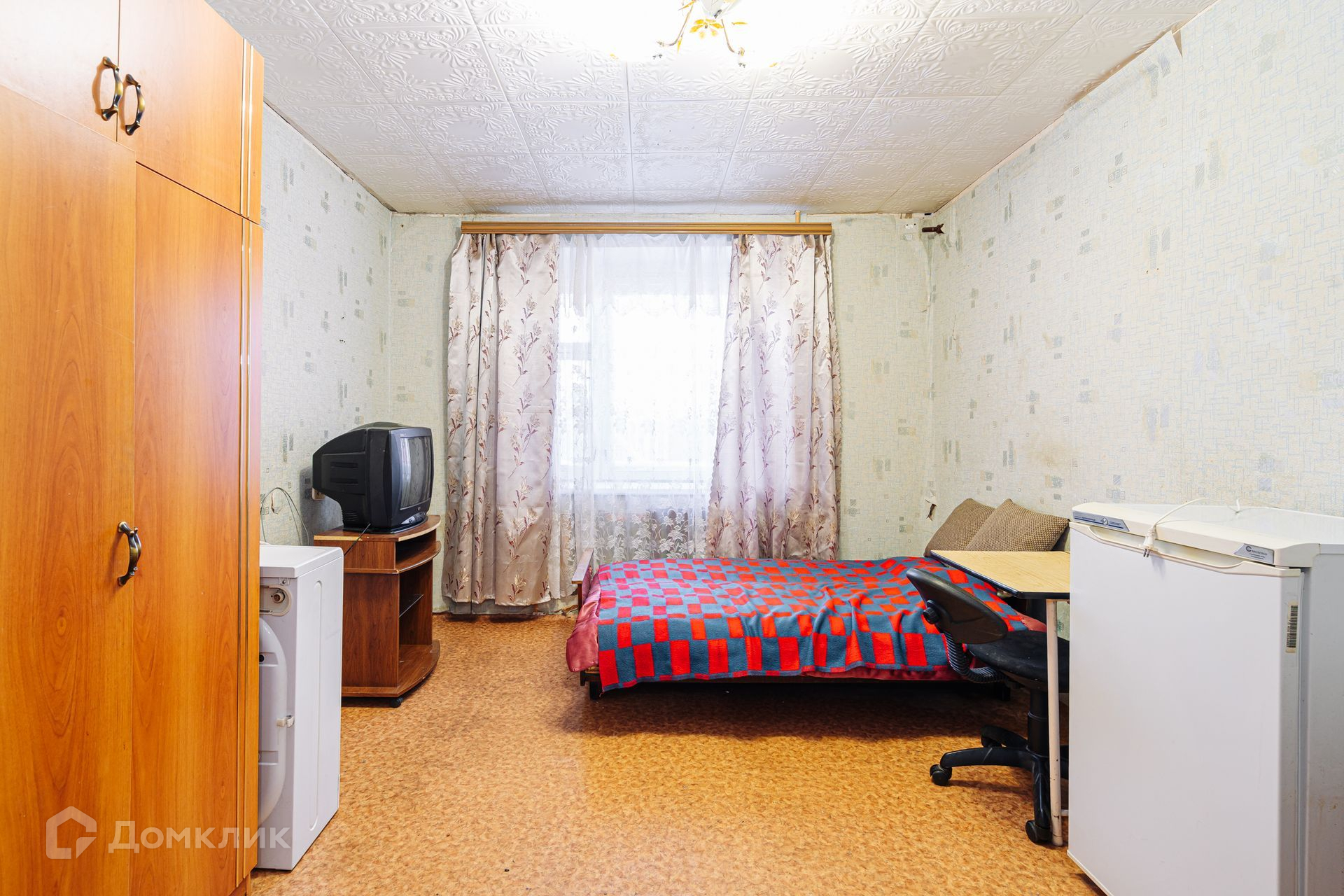 Идеально подойдет для проживания одному человеку или паре. В комнате есть вся необходимая мебель и техника для проживания.
