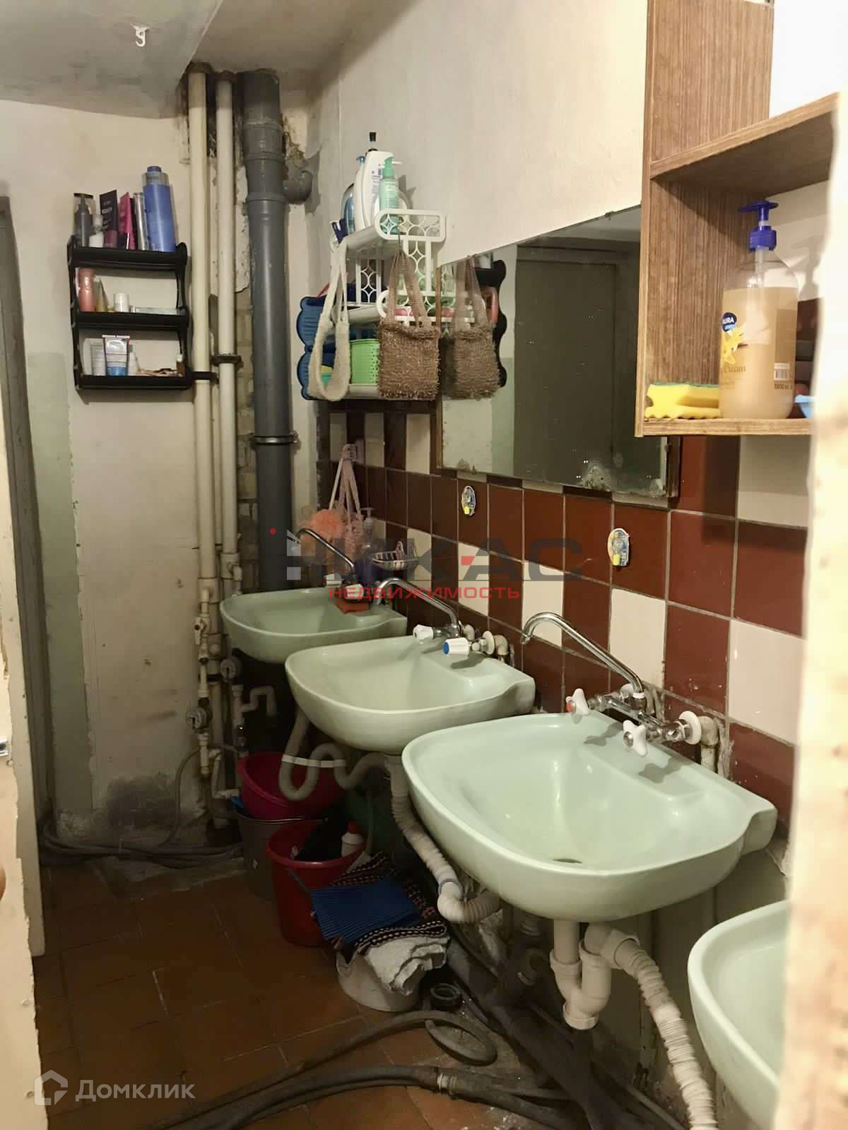 Кухня на 8 комнат, душ на 4 комнаты, туалет на 4 комнаты. Соседи - девушки, женщина с ребенком, студенты.