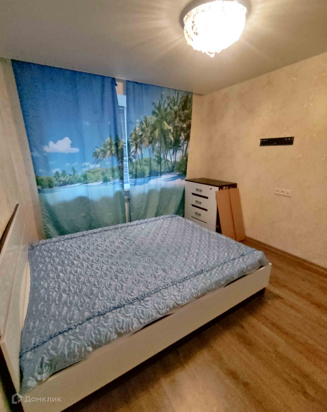 В квартире есть: кухонный гарнитур, кровать, два дивана, три шкафа, три комода.