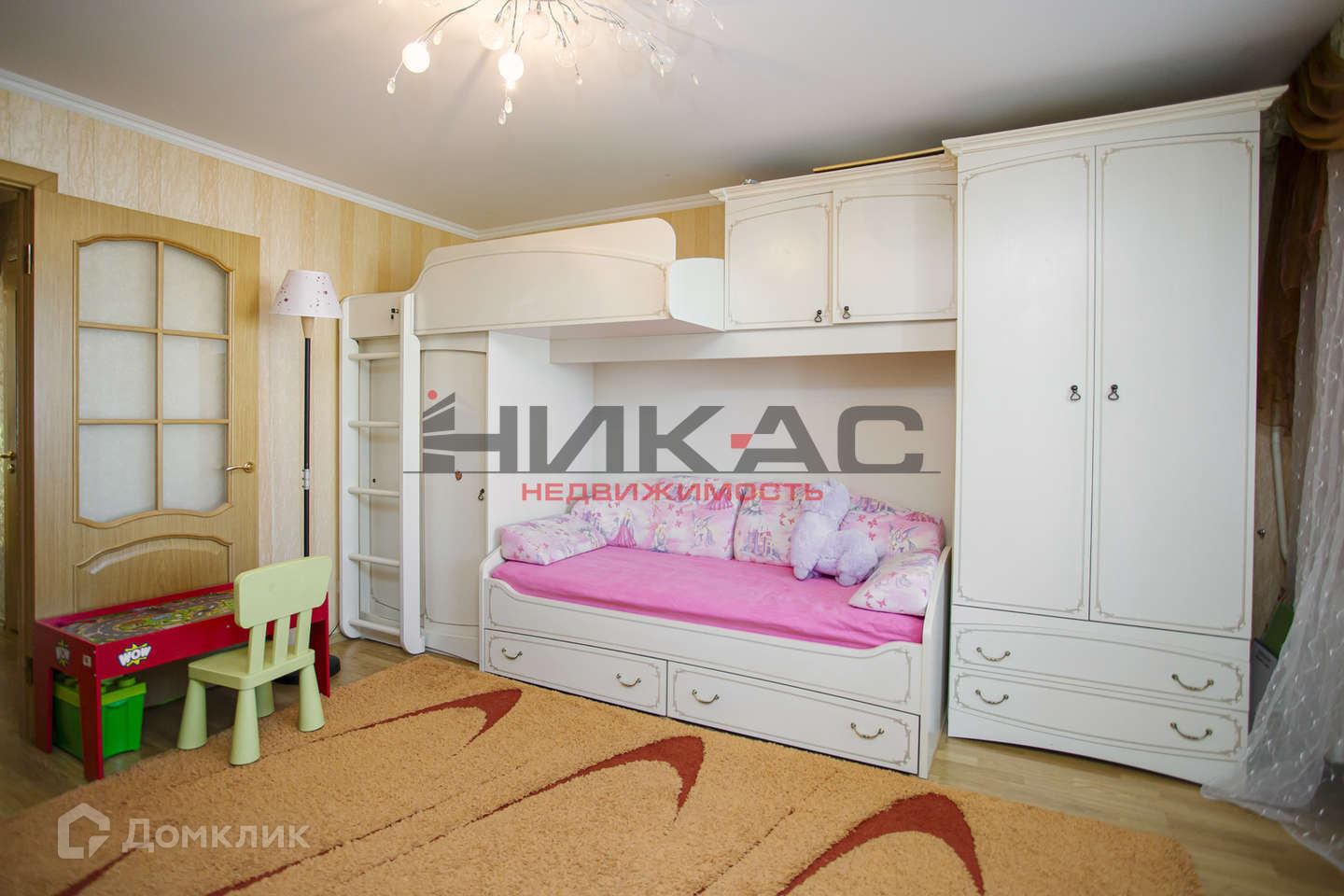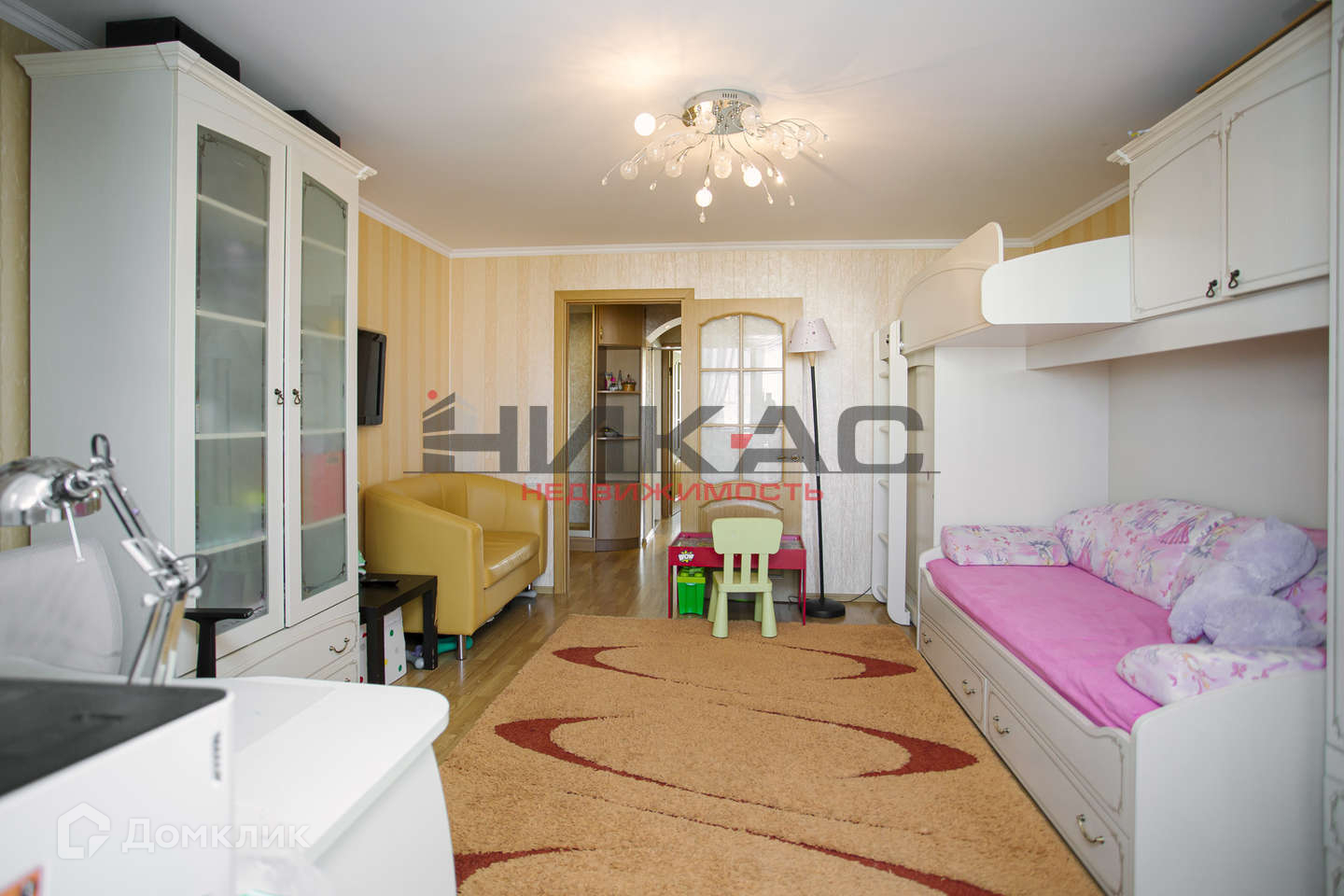 Все комнаты раздельные: две детские комнаты и спальня.