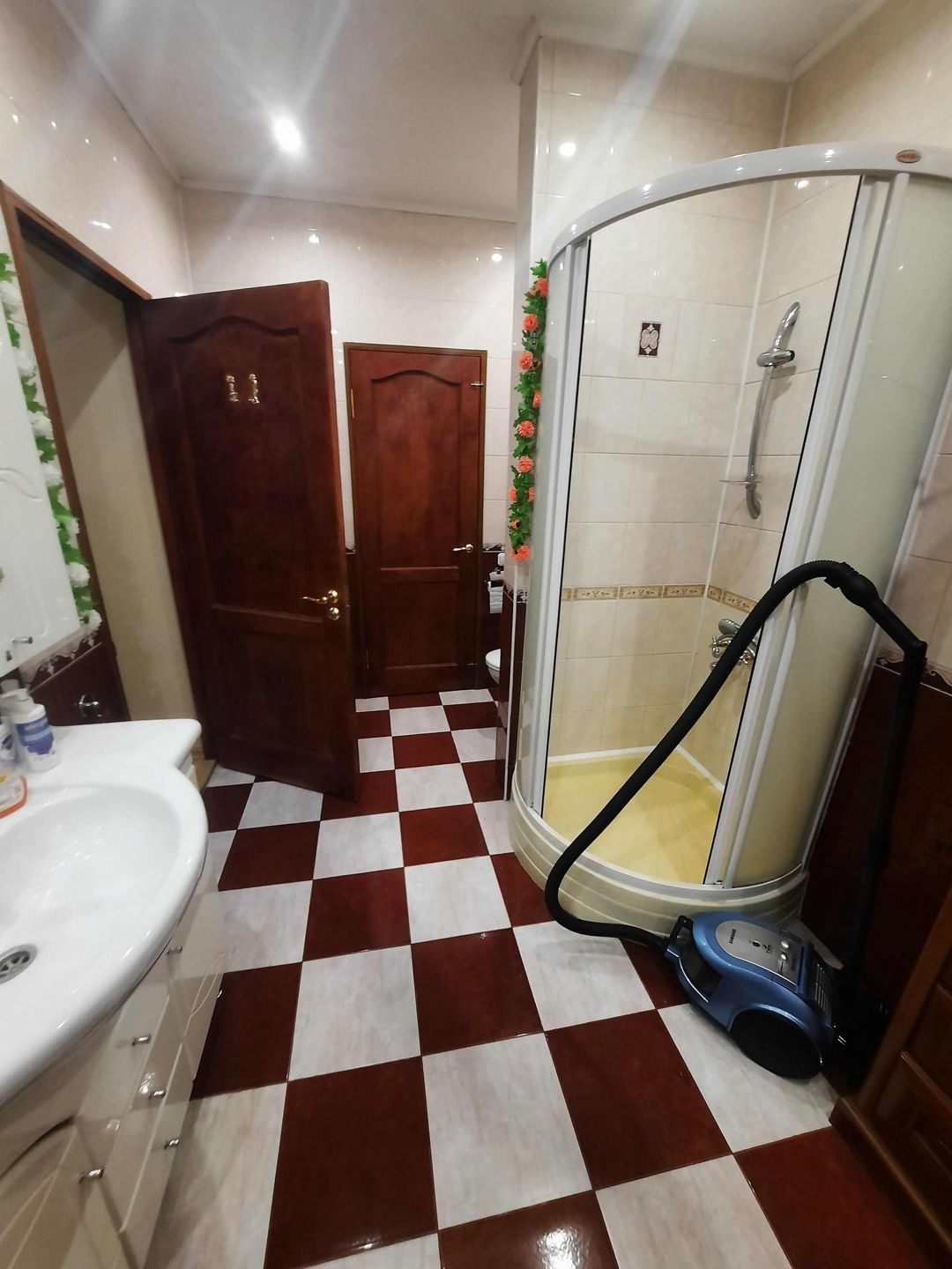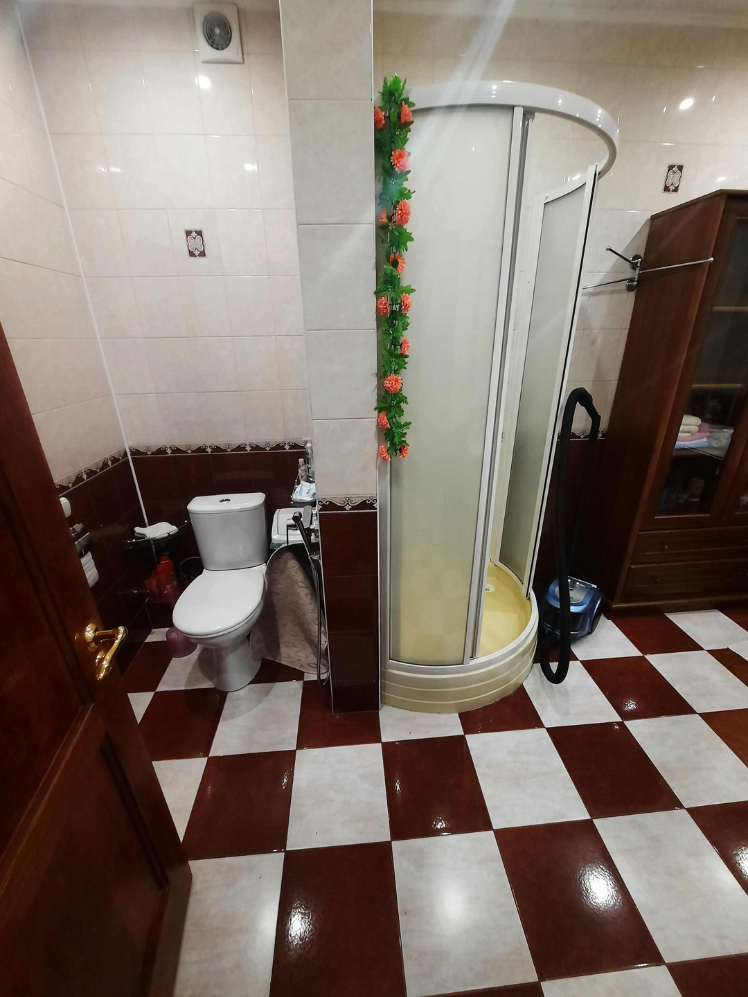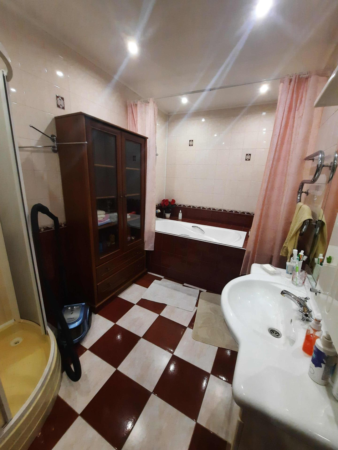 Удобная ванная комната совмещена с душевой кабиной.
