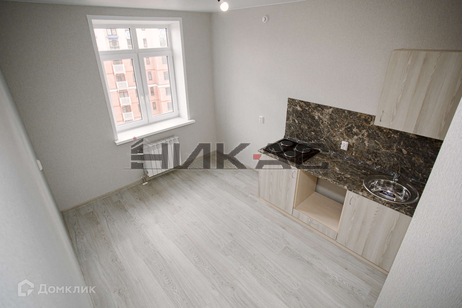 В наличии только кухонный гарнитур и варочная поверхность.