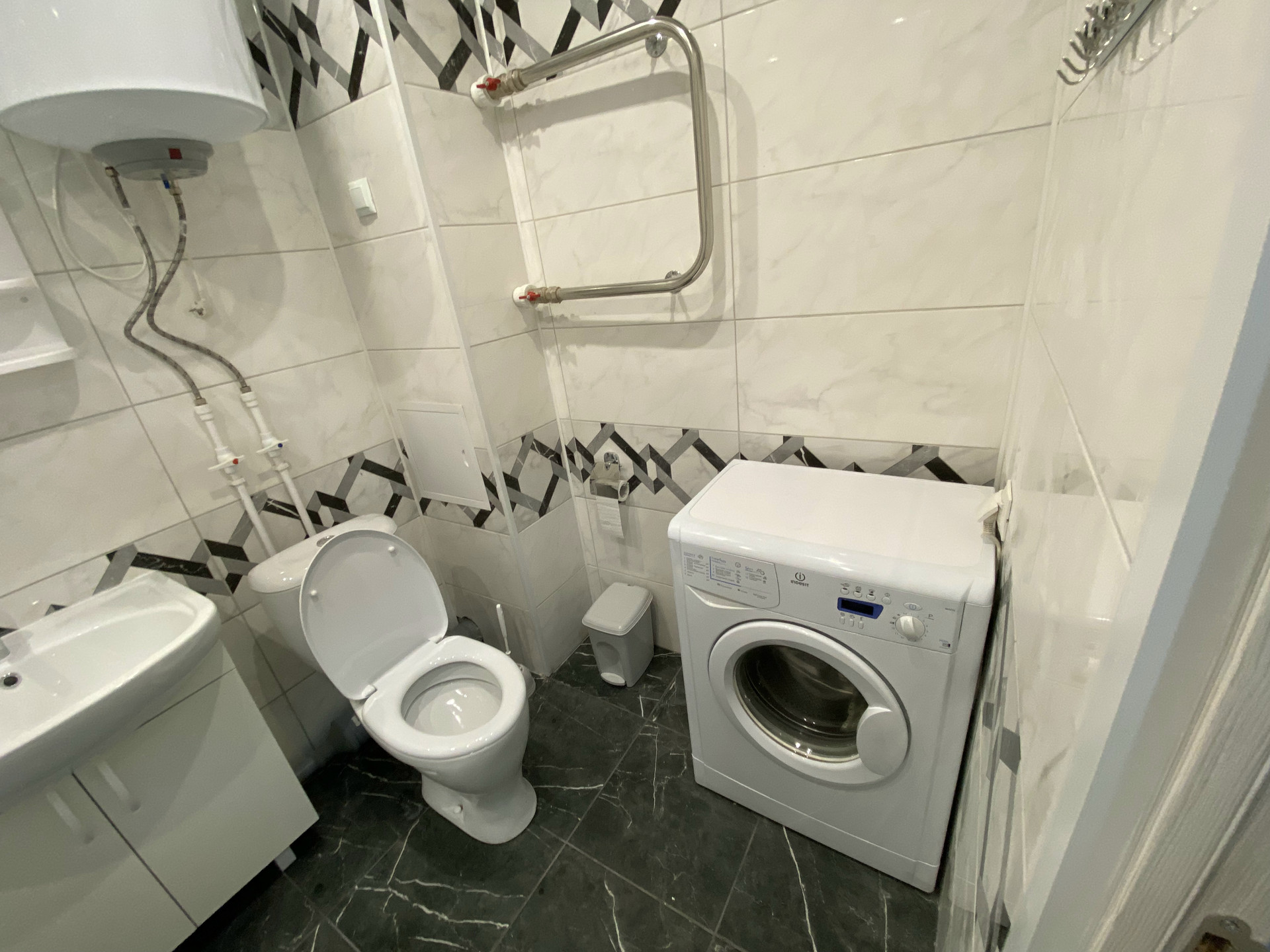 Объединенный санузел оборудованный бойлером для горячей воды.