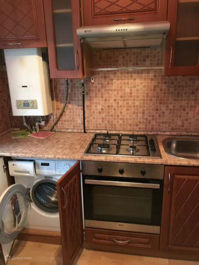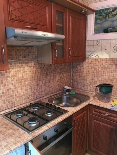 В квартире есть: диван, большой шкаф-купе, стенка, холодильник, стиральная машина, чайник, посуда.