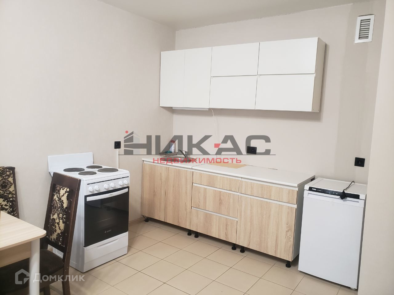 Также имеется кухонный гарнитур с современной техникой.