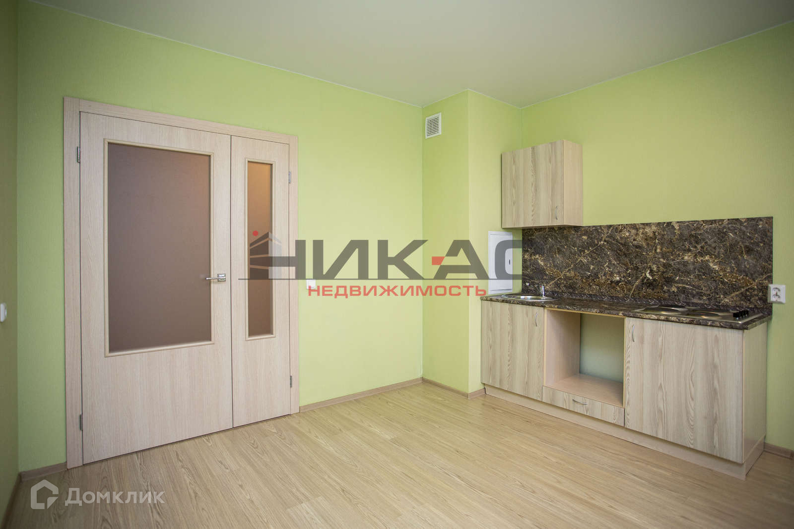 На кухне установлен кухонный гарнитур и варочная панель. КОМНАТЫ ПУСТЫЕ.