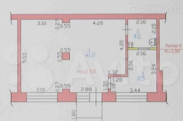 Общая площадь 55 м2