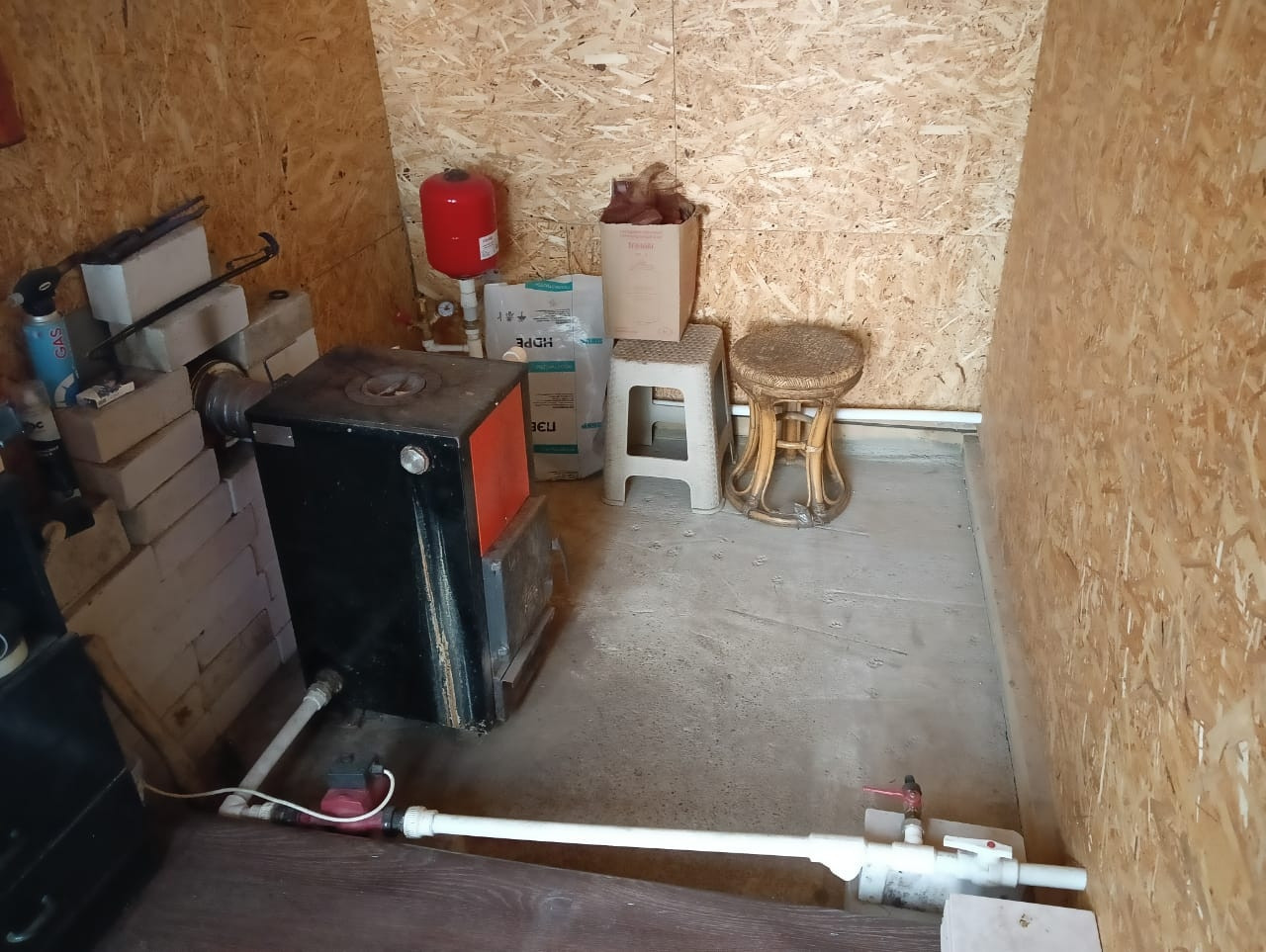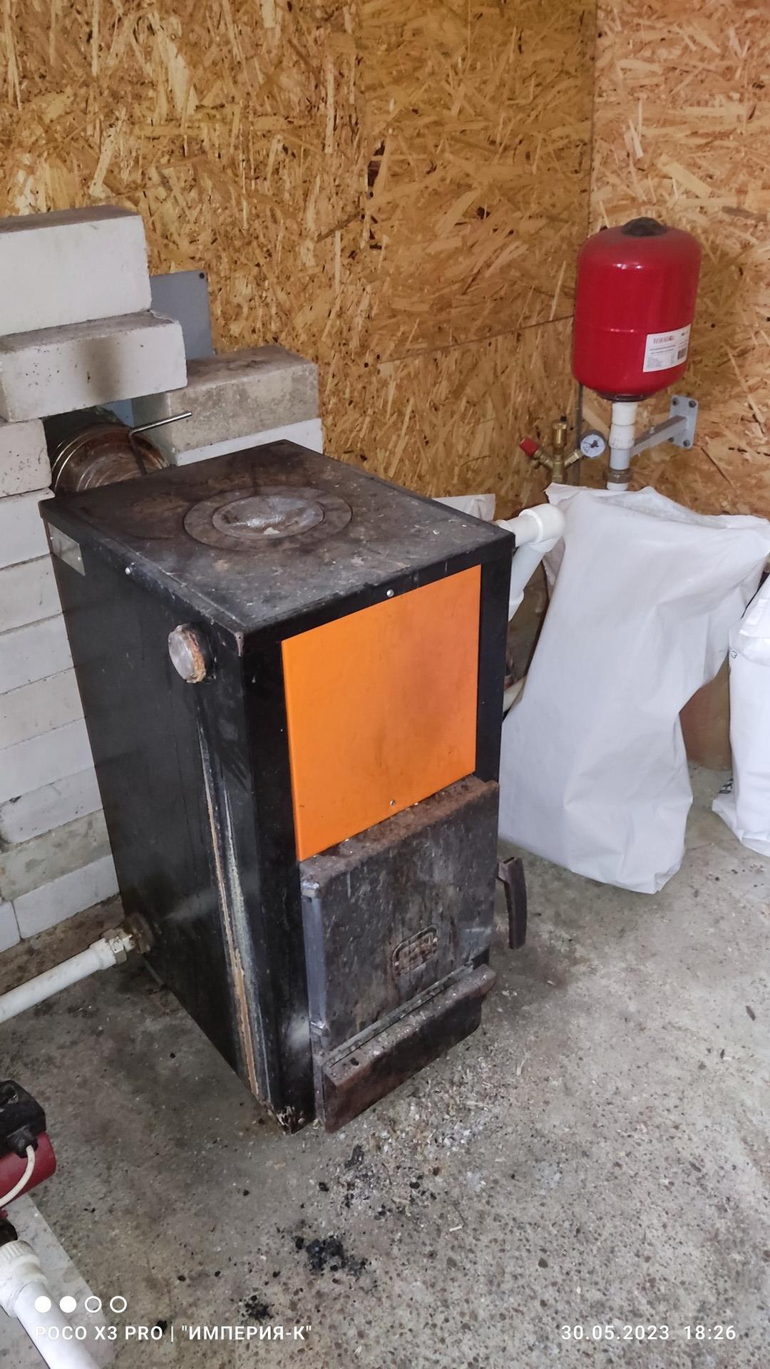 отопление- комбинированный котел Теплодар (топится брикетами)