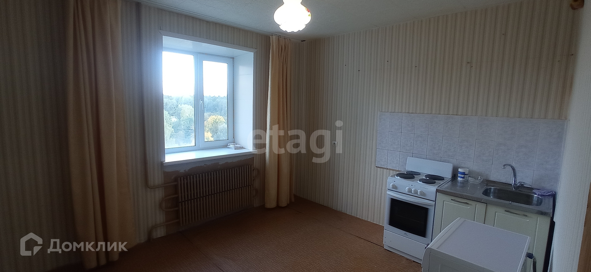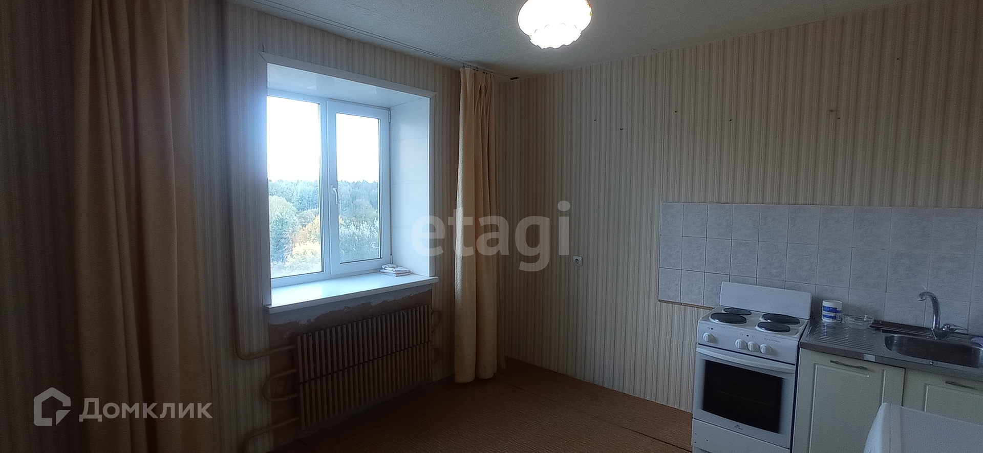 В шаговой доступности вся инфраструктура: дет.сады, школы, магазины, остановка общественного транспорта. Рядом лесной массив. Остается э/плита и мойка на кухне.