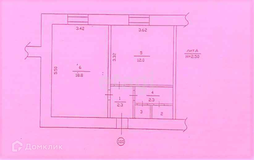 Общая площадь 37.6 м2
