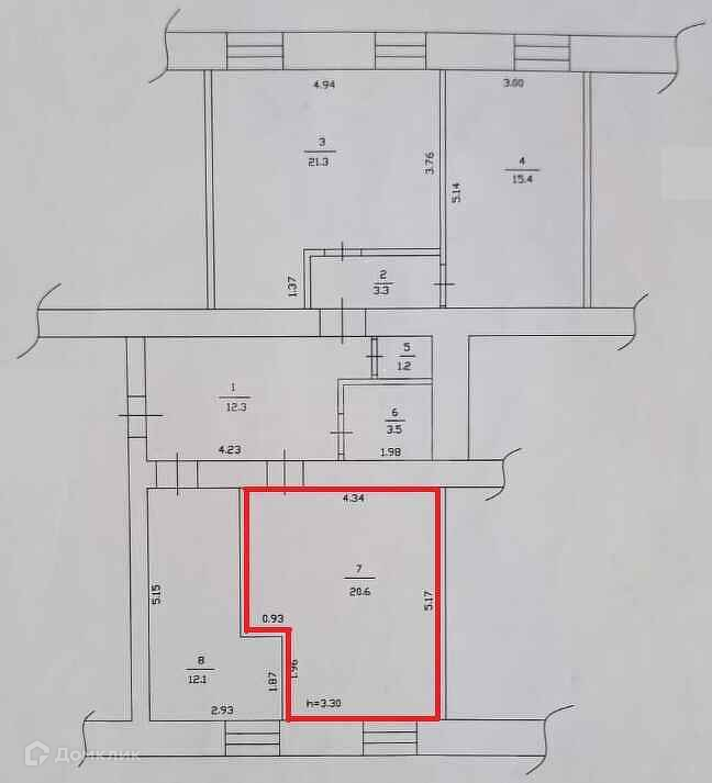 Общая площадь 20.6 м2