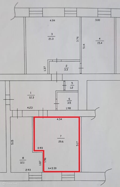 Жилая площадь 20.6 м2