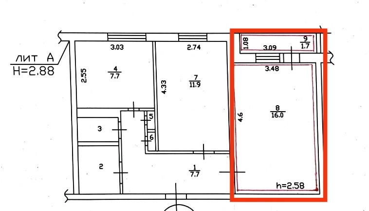 Площадь кухни 7.7 м2