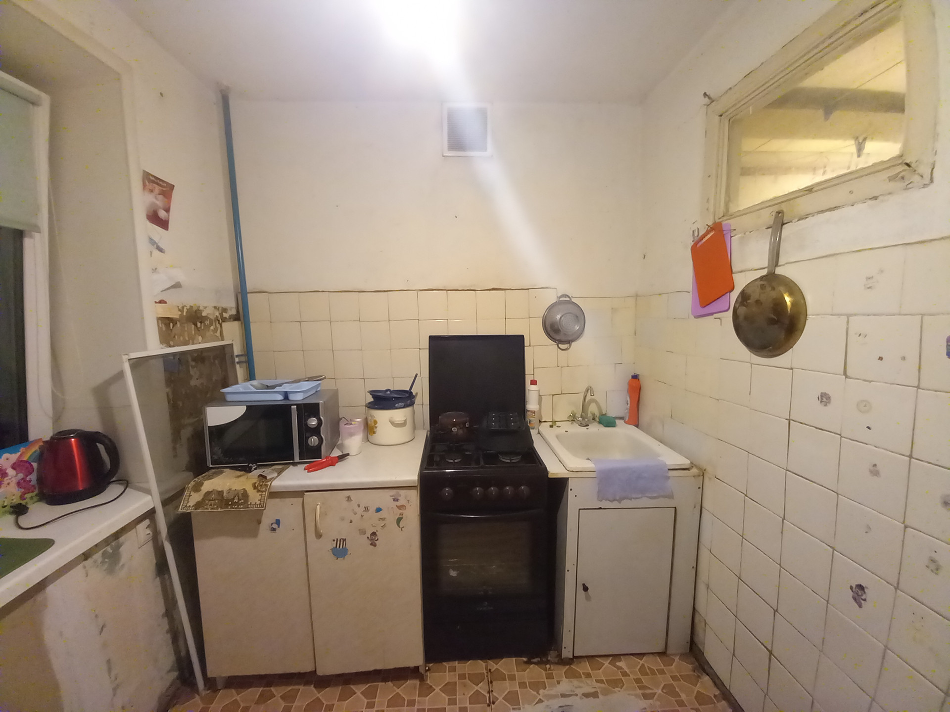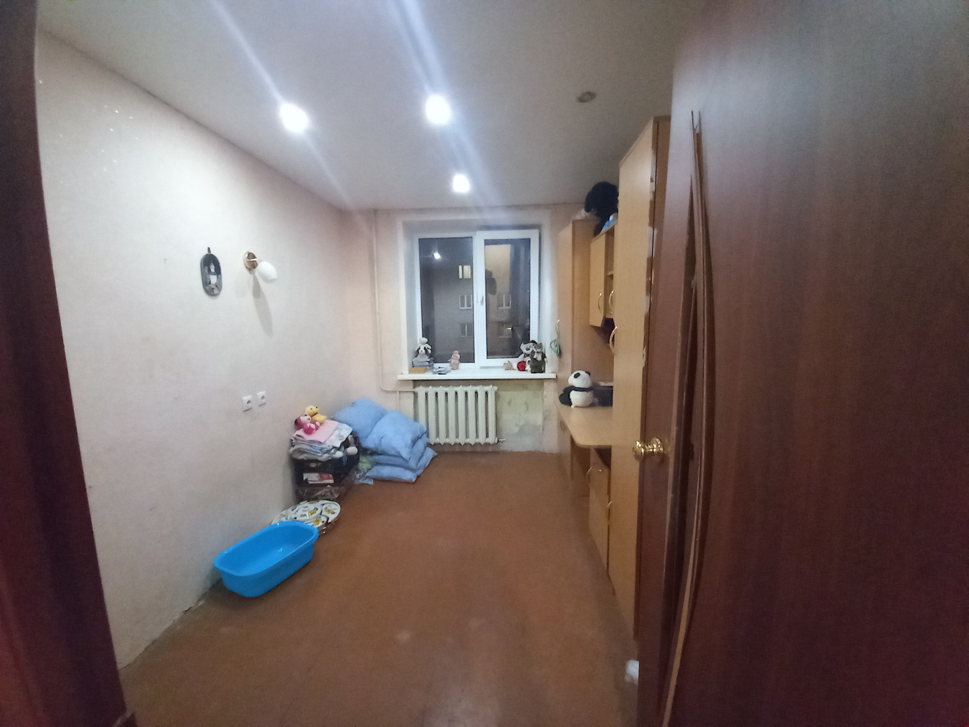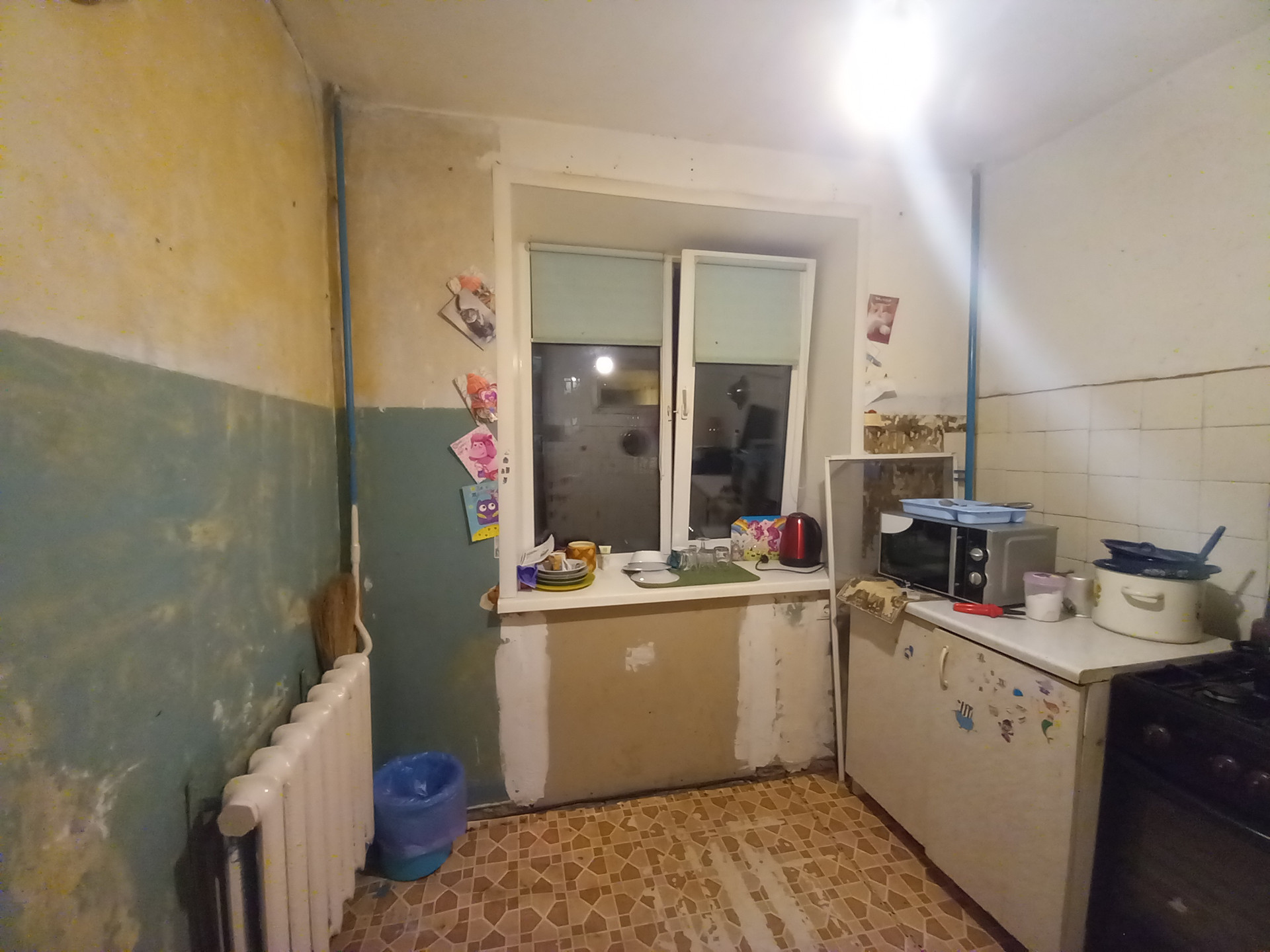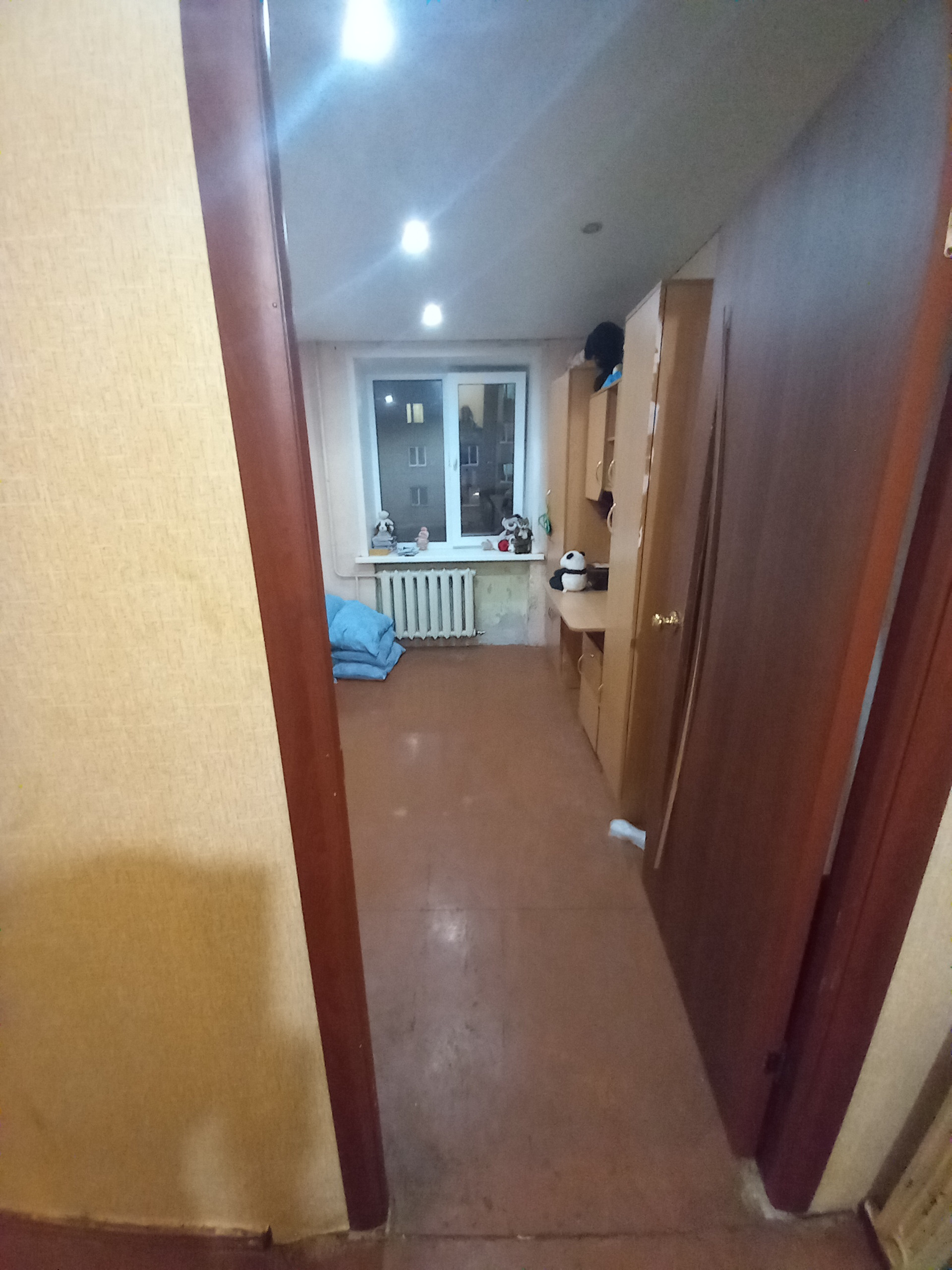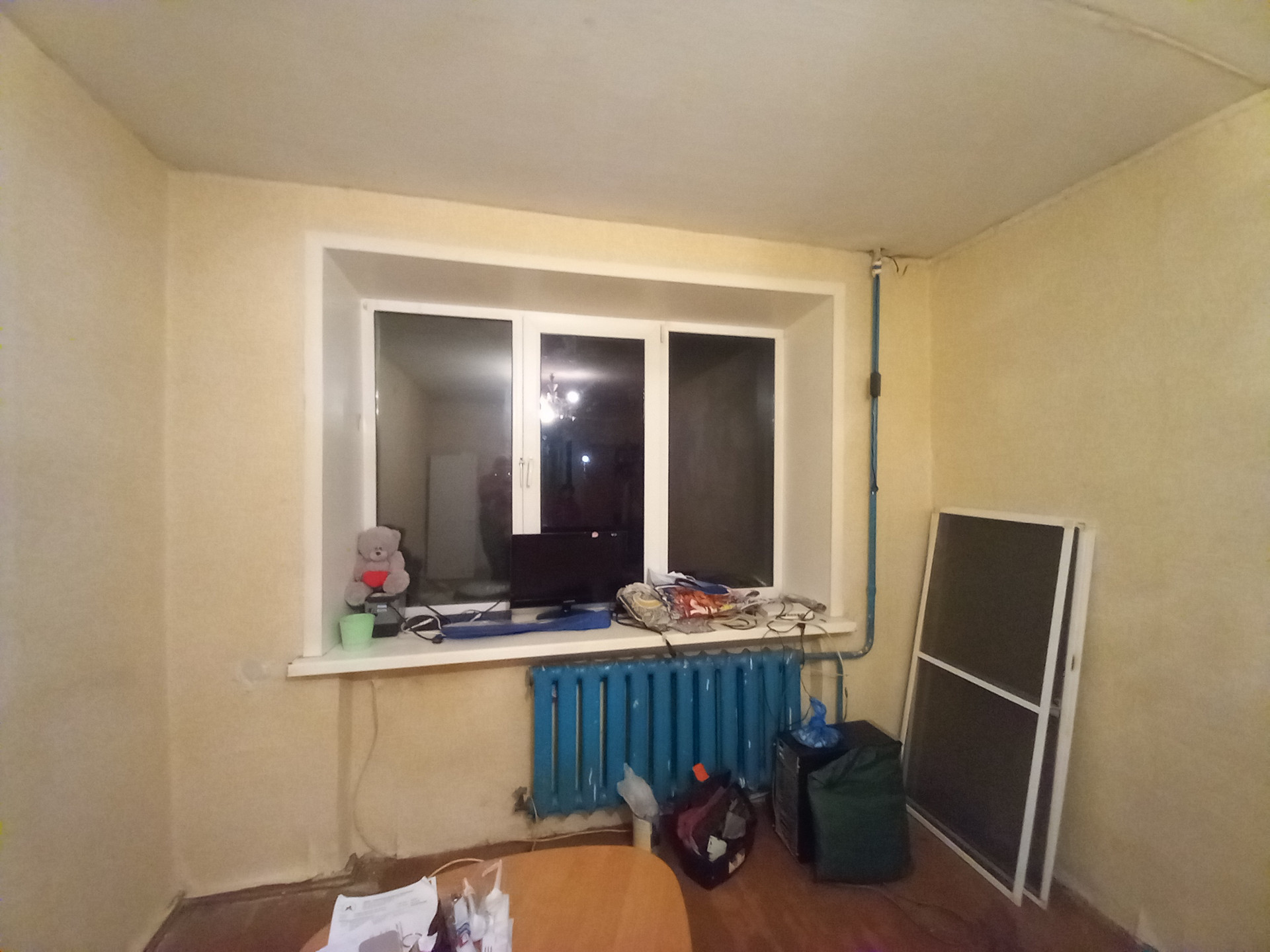 В квартире пластиковые окна и металлическая дверь. Комната одна изолированная, две другие совмещенные. Квартира хоть угловая, но очень теплая.