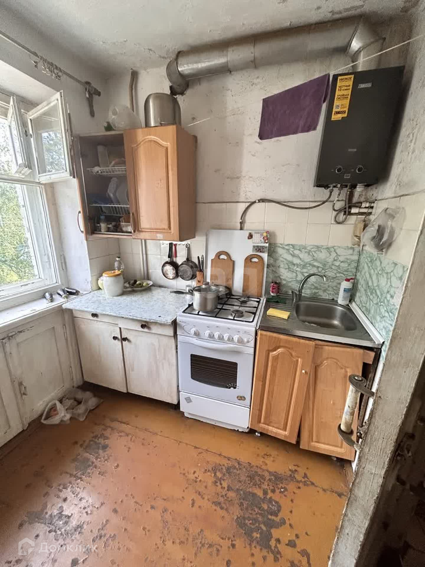 Доп. описание: санузел раздельный, деревянные окна, в доме есть: детская площадка, открытый двор, наземный паркинг, без лифта, требует ремонта/частичный ремонт, также имеются: интернет, кабельное телевидение, счетчики холодной и горячей воды, домофон, железная дверь,