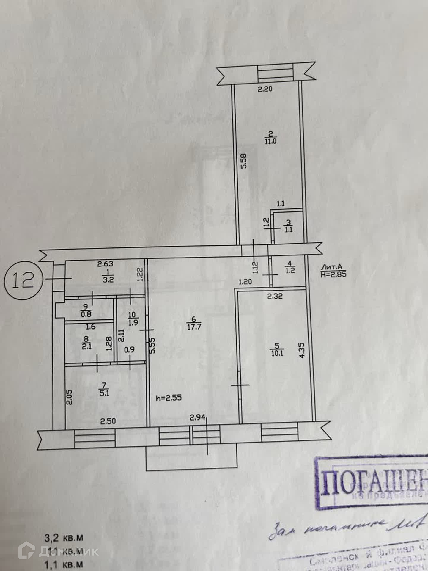 Общая площадь 54.2 м2