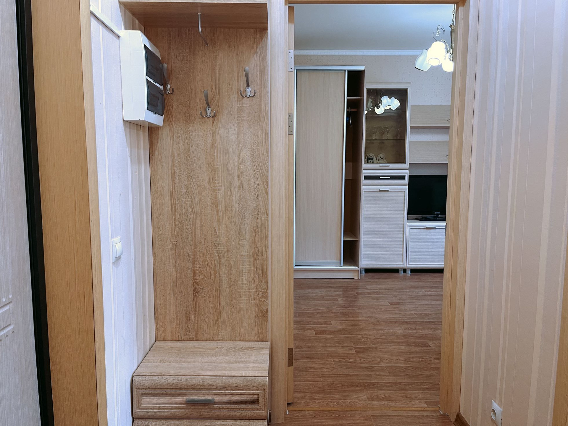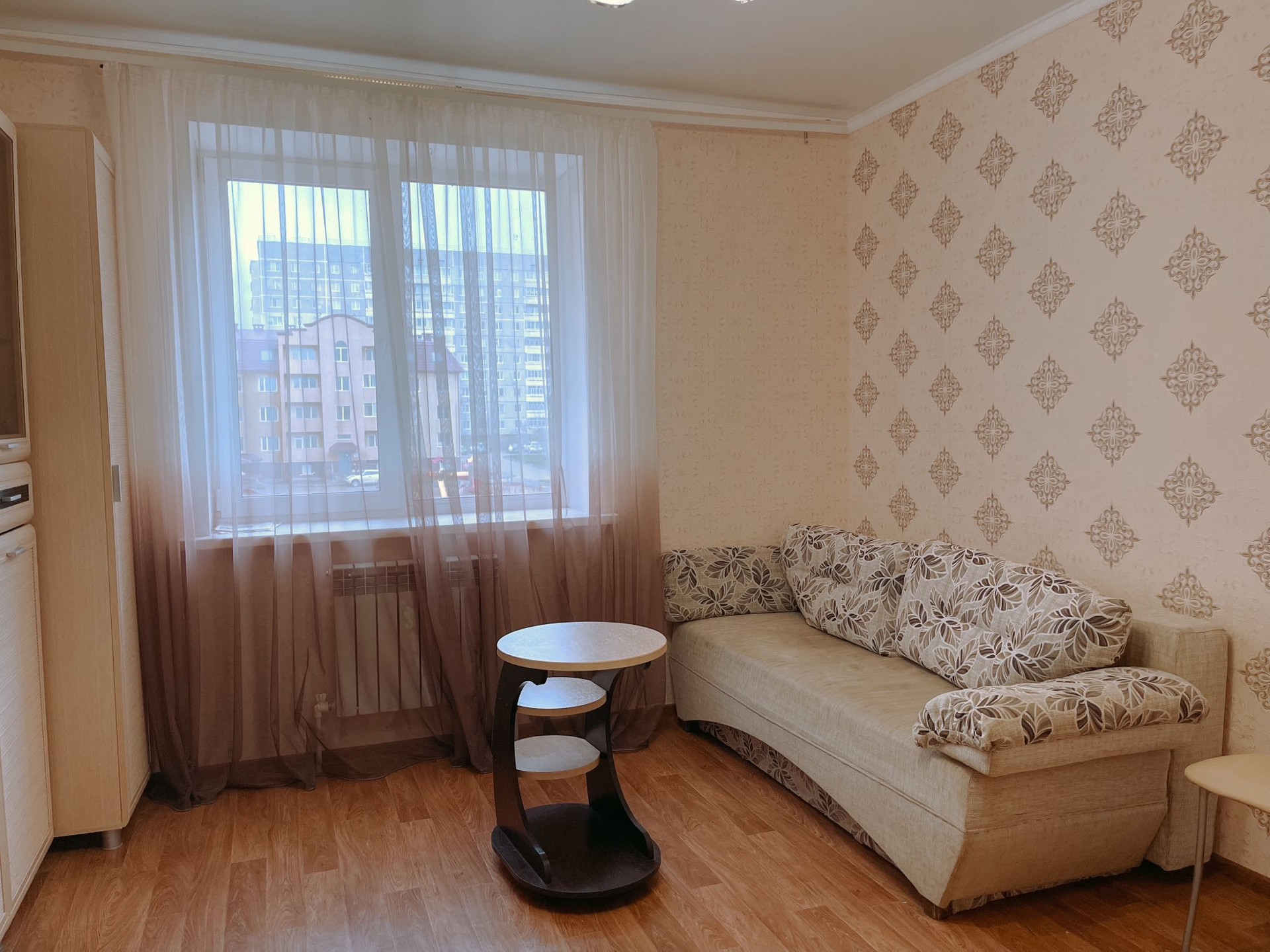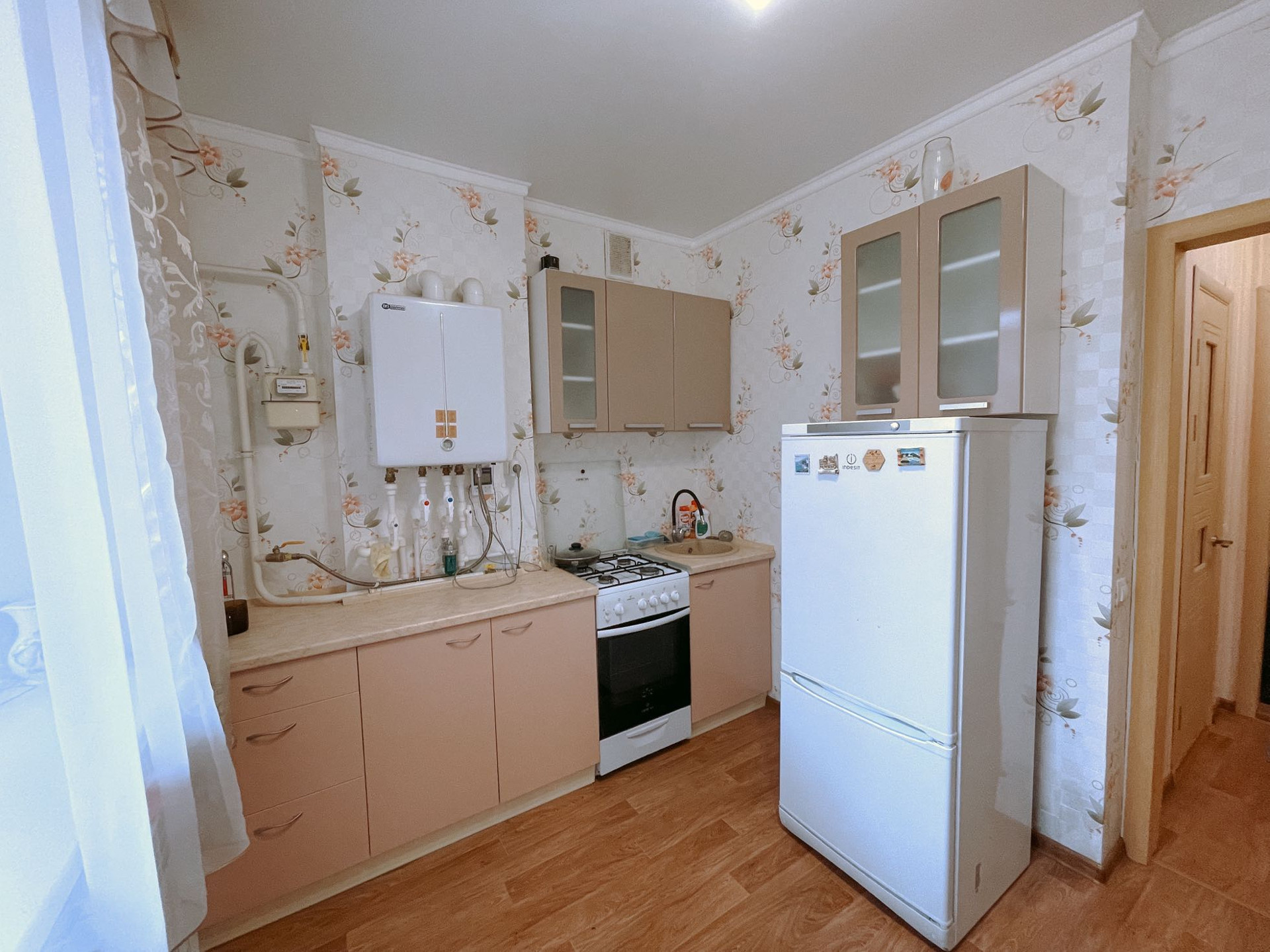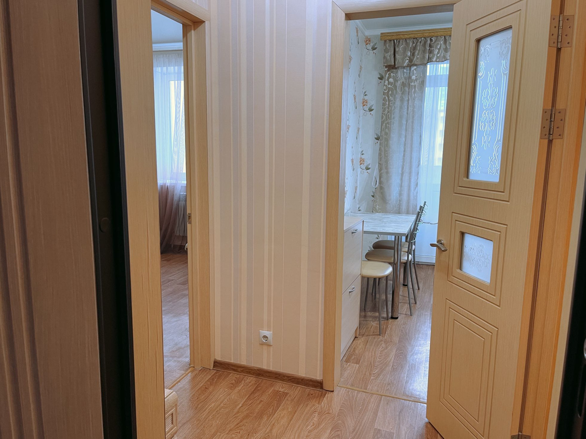 Проход на лоджию, через кухню. Везде пластиковые окна. Хороший ремонт, ламинат, натяжные потолки. Мебель и техника вся остается, заберется только телевизор.