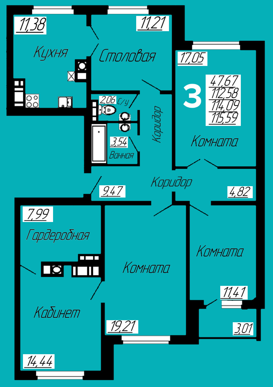 Общая площадь 115.75 м2