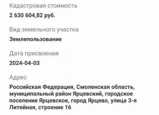 💲 Какая средняя цена продажи участка в Ярцево, Смоленская область?