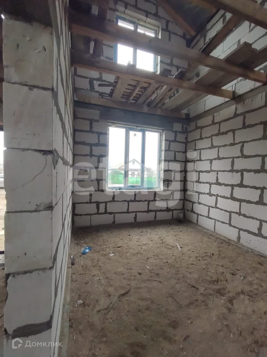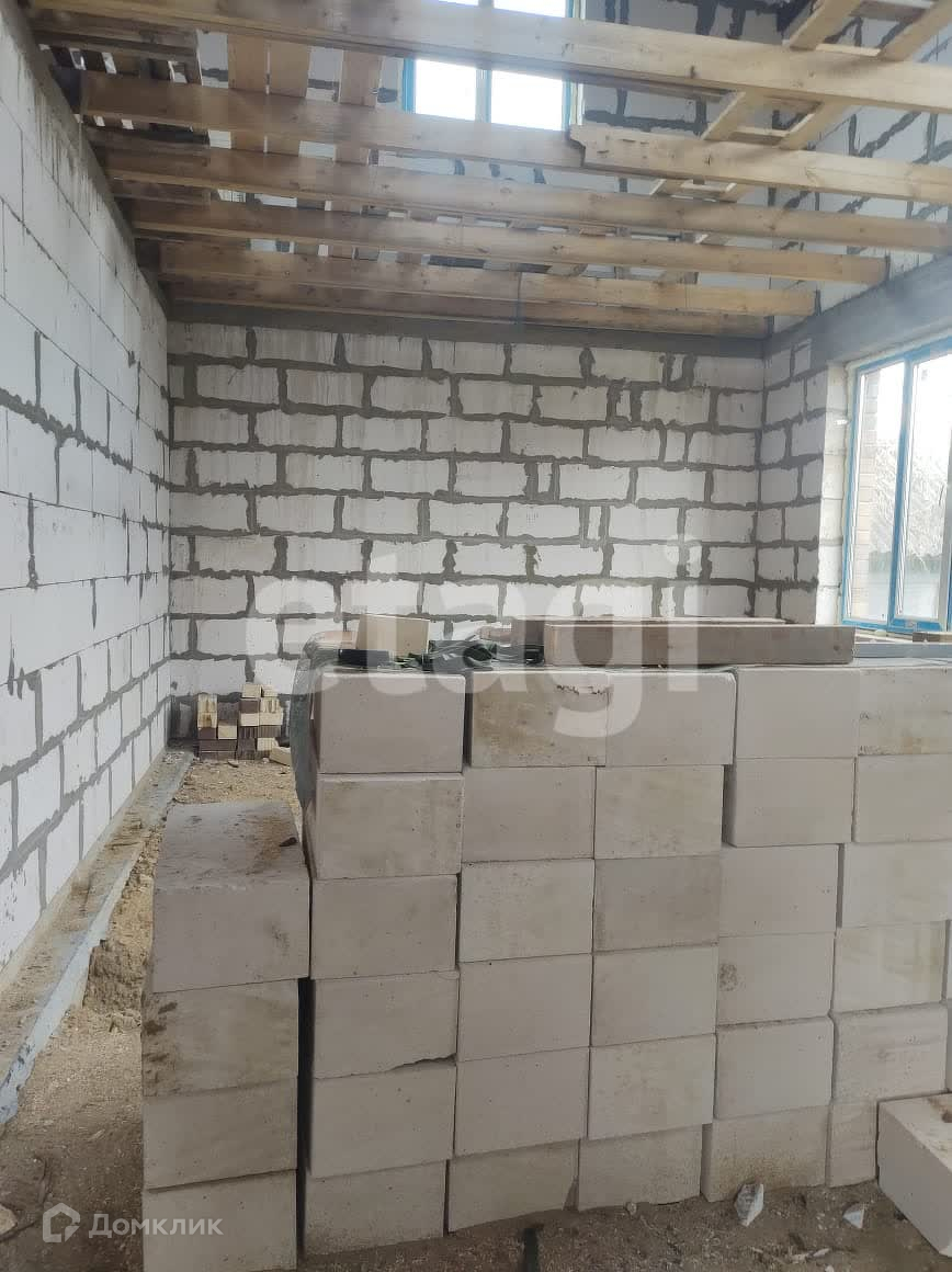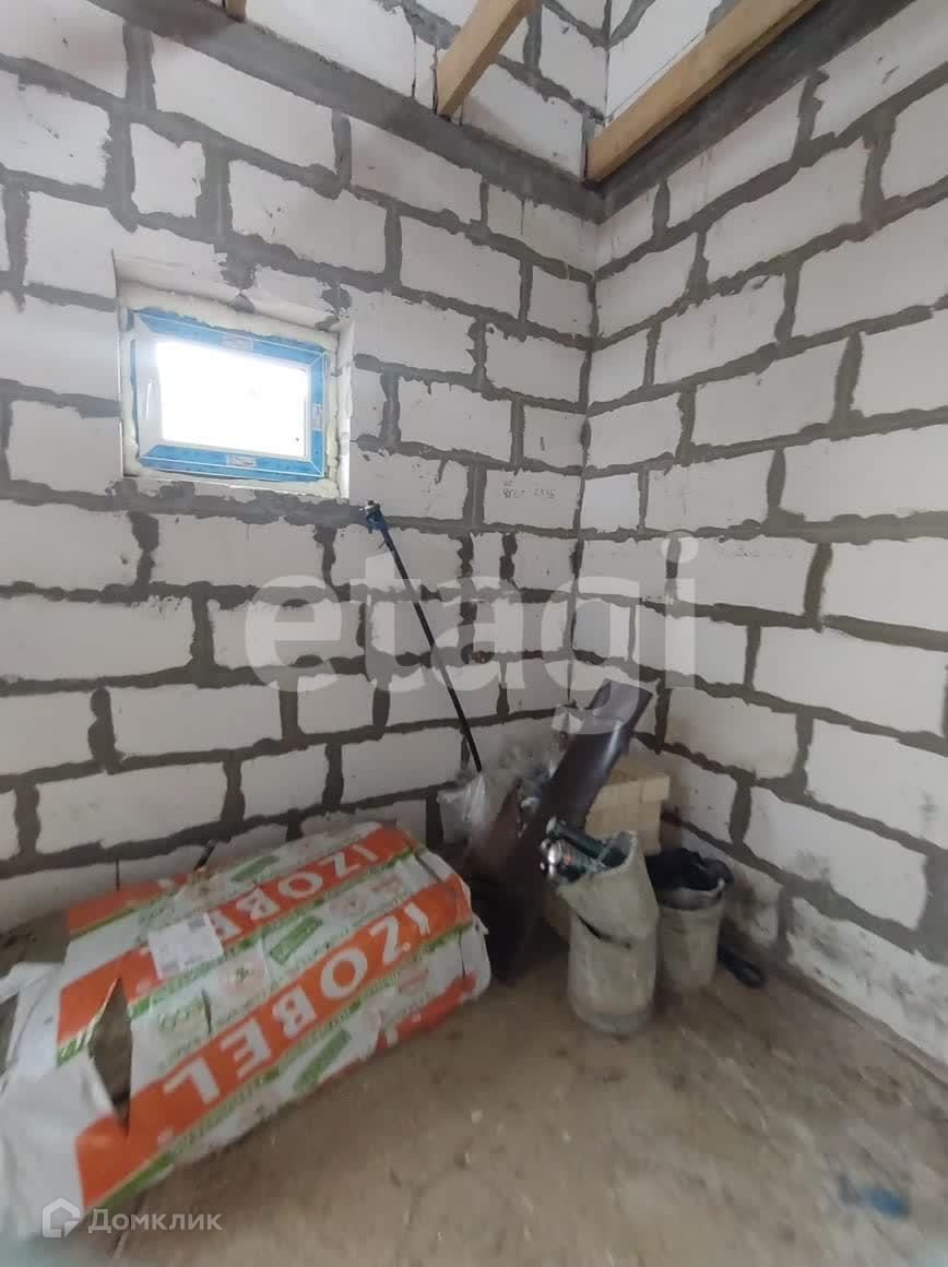 Стены из газобетона и обложены фасадным кирпичом. Вентилируемый фасад. На территорию участка заведен газ. Дом подключен к центральному водопроводу. Будет установлен септик. В доме установлены пластиковые окна, ведется строительство внутренних помещений второго и первого этажа.