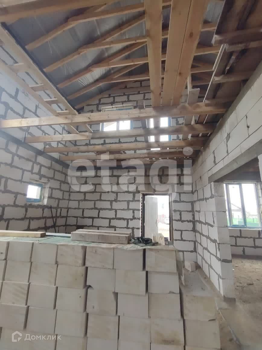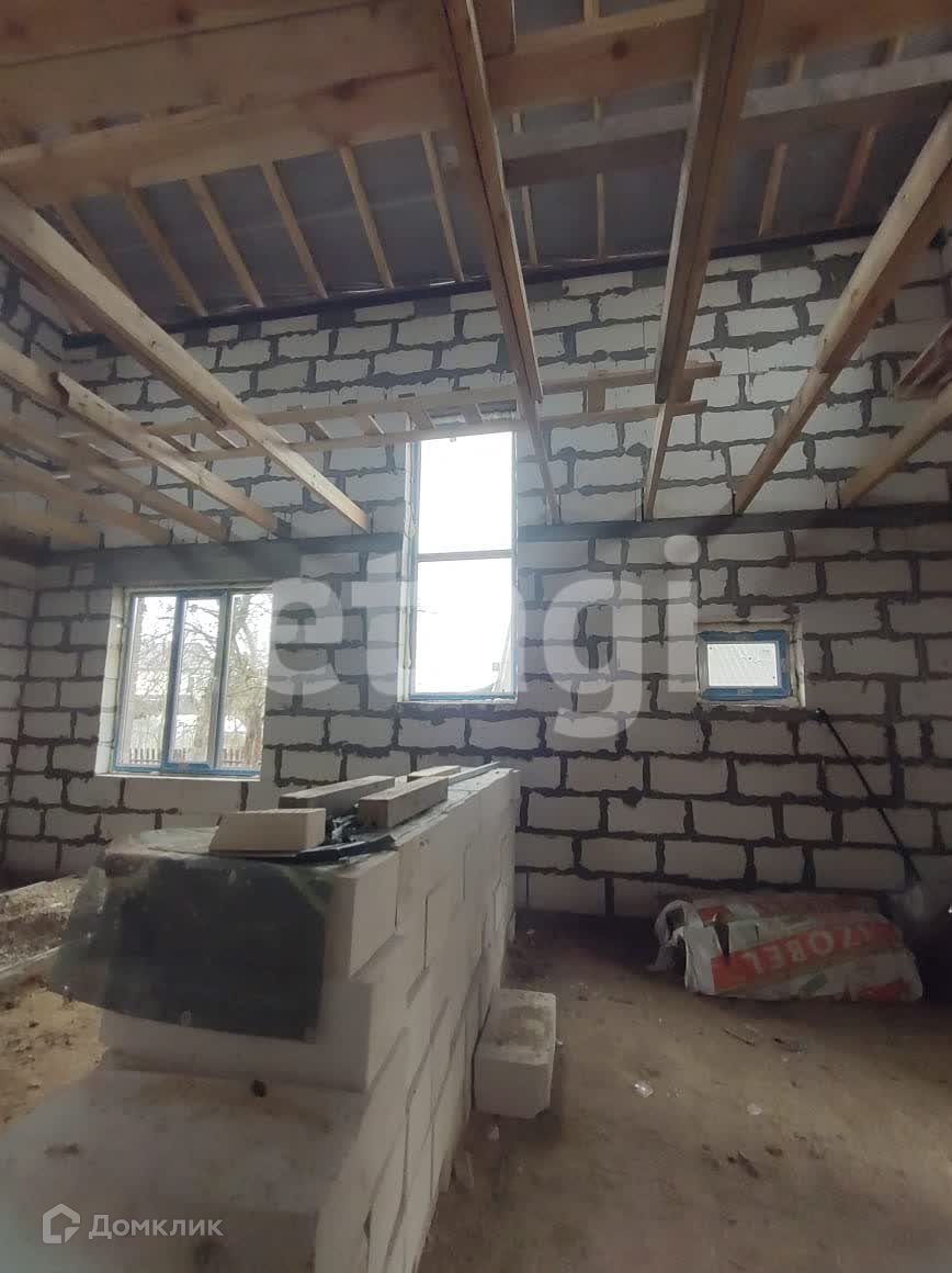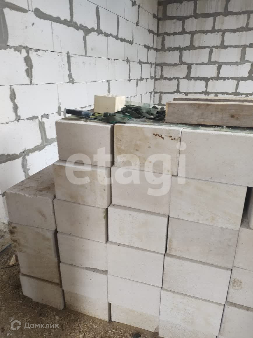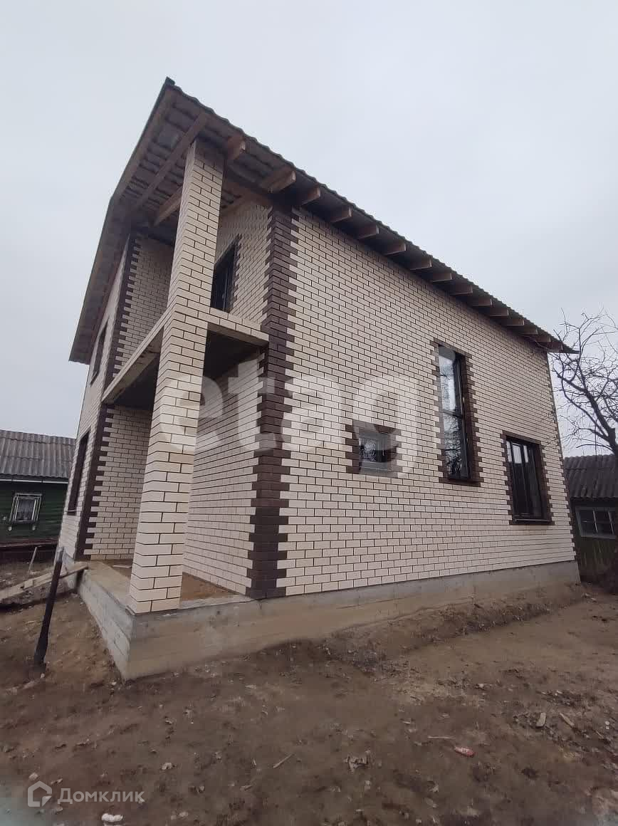 Стены из газобетона и обложены фасадным кирпичом. Вентилируемый фасад. На территорию участка заведен газ. Дом подключен к центральному водопроводу. Будет установлен септик. В доме установлены пластиковые окна, ведется строительство внутренних помещений второго и первого этажа.