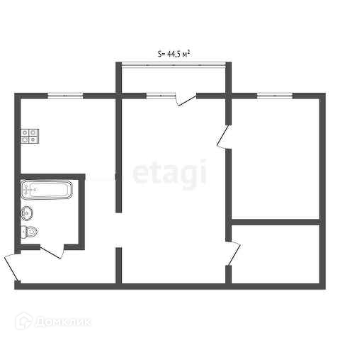 Общая площадь 44.5 м2