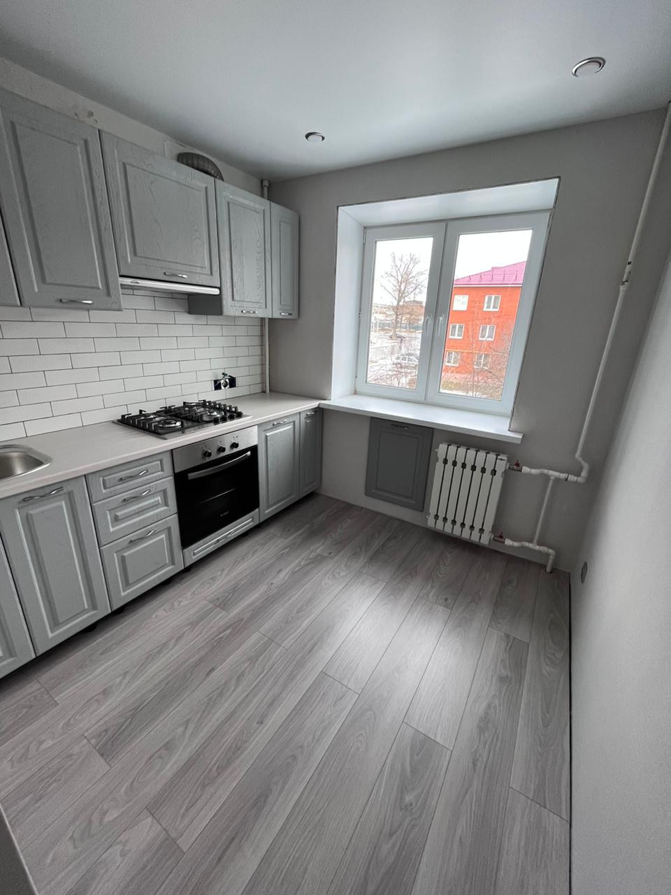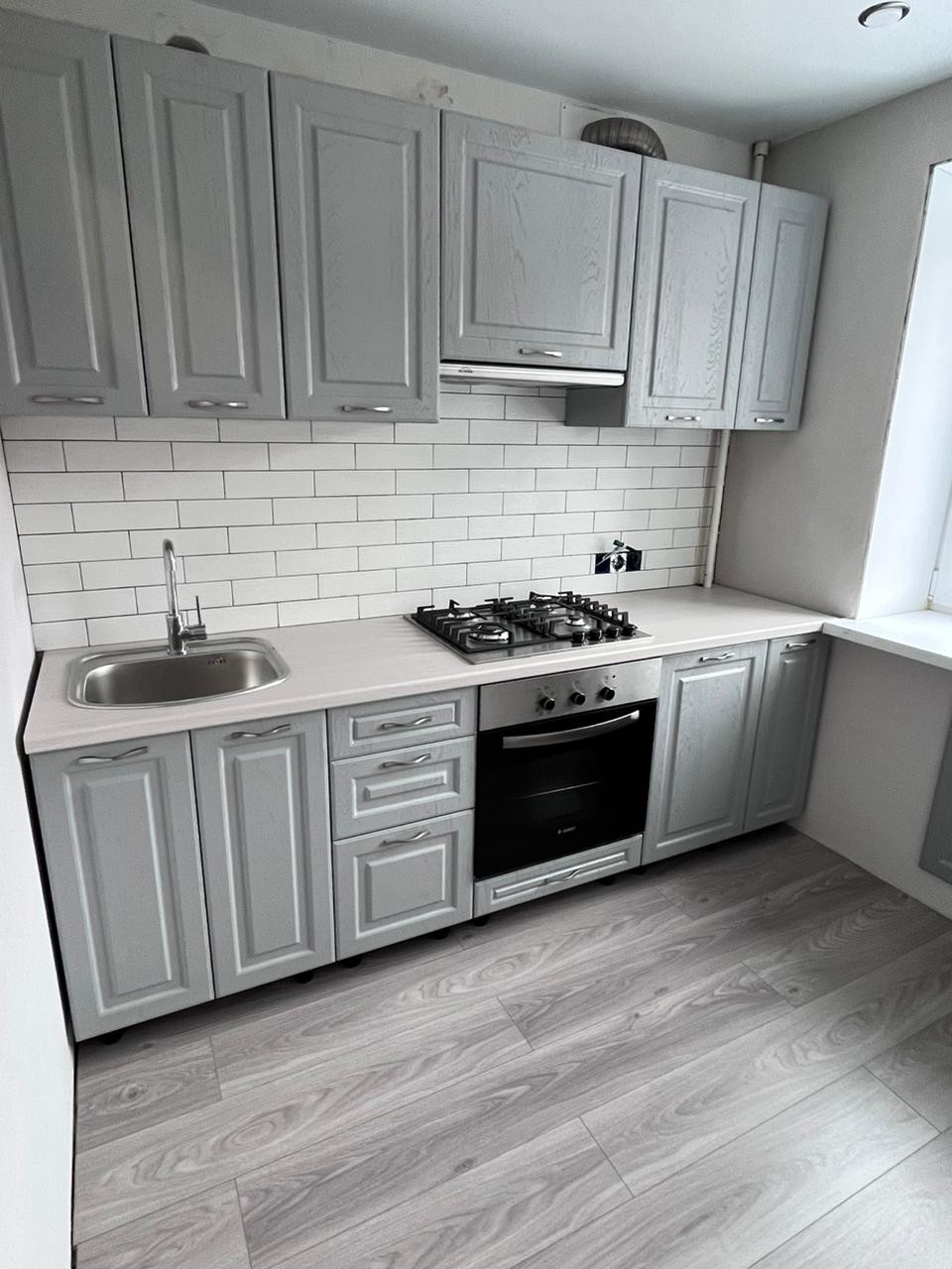 - Новый кухонный гарнитур с встроенной бытовой техникой (газовая варочная панель, электро духовой шкаф, вытяжка, газовая колонка спрятана в навесном шкафу по всем нормам);